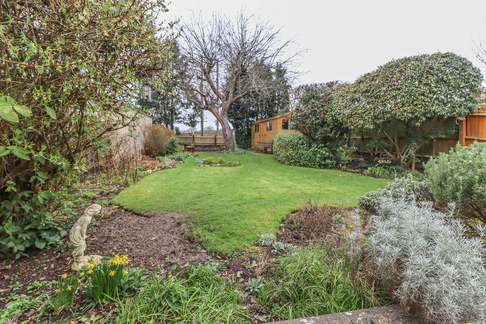 REAR GARDEN Recently installed large Indian sandstone terrace, ideal for barbeques and entertaining. Retaining wall with flower, herb and shrub border behind. Sleeper/gravel steps to one end leads onto the main shaped lawn. Further well stocked borders. Fencing to the boundaries. Small wildlife pond. Old apple tree.