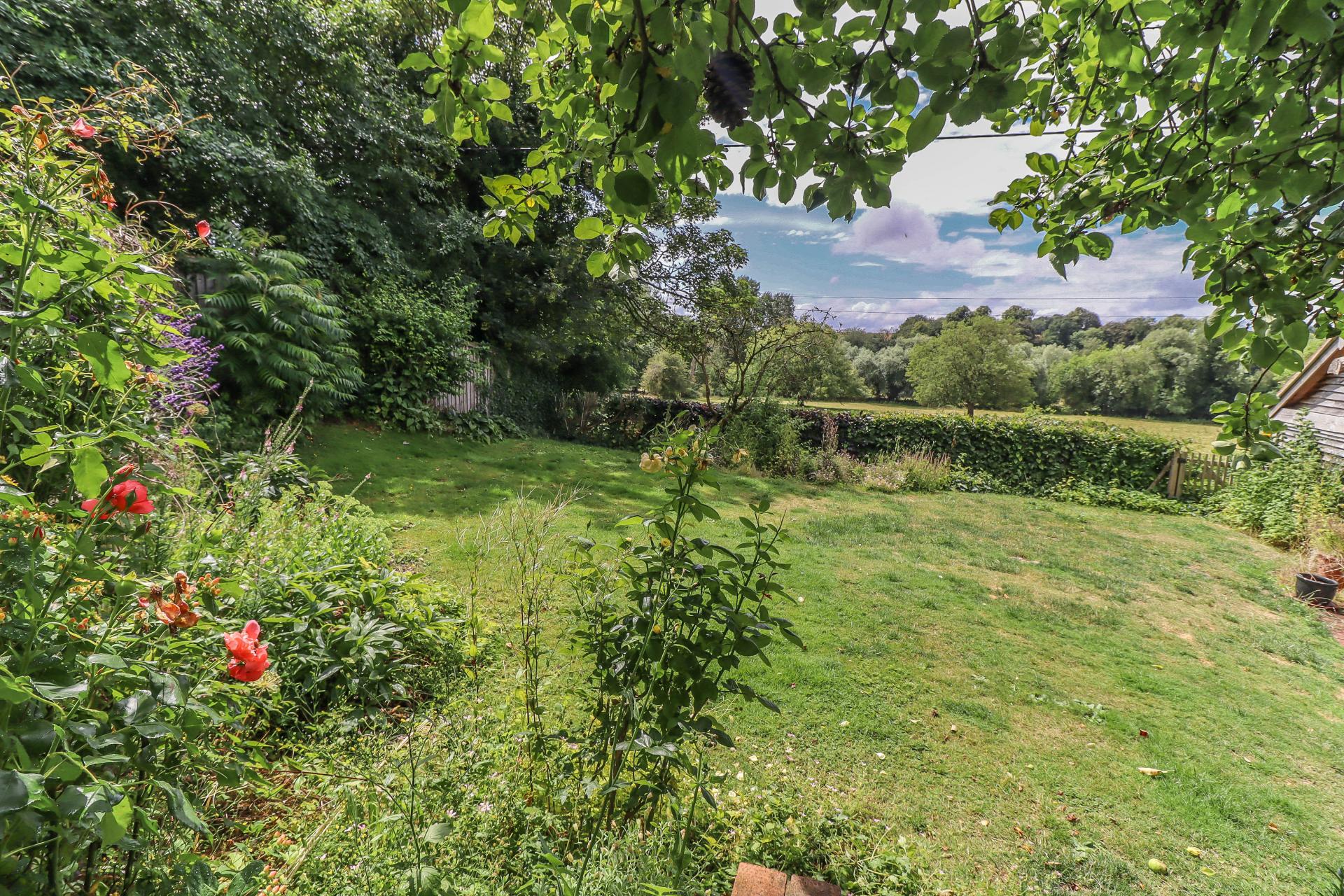 SPLIT LEVEL UPPER GARDEN Views over the valley. This area is well enclosed by feather edge fencing. Sleeper retained border with specimen tree to rear boundary. Sleeper edge brick steps at the rear of the house lead to aluminium frame greenhouse.