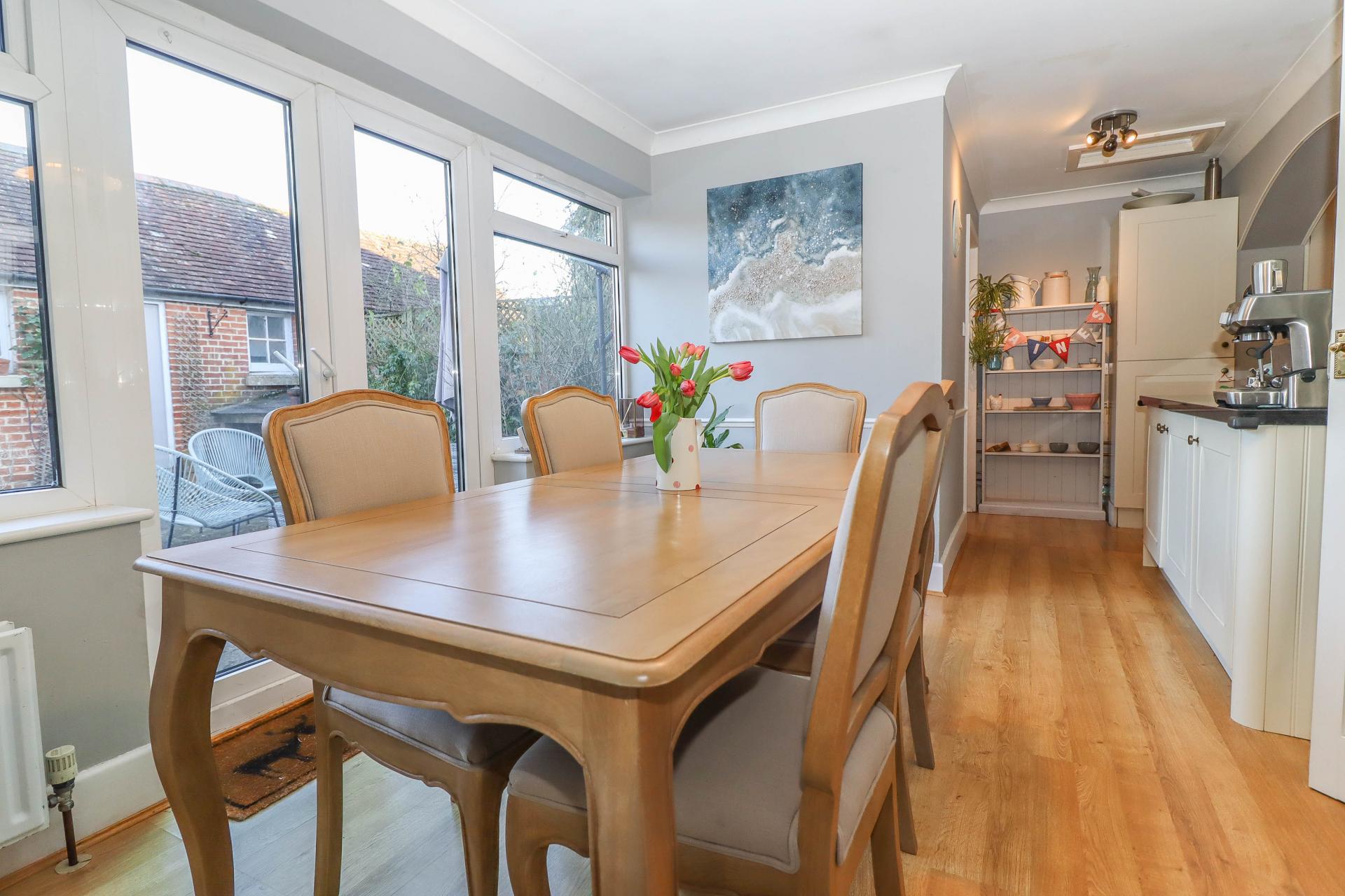 An attractive large extended Victorian semi-detached house, with brick elevations beneath a tiled roof. The accommodation is light and airy with a spacious feel and high ceilings. The ground floor comprises a good size central hall, living room, separate sitting room (each with fireplace), dining room and kitchen. There is also a rear lobby and ground floor cloakroom. The dining room has a door leading into a large integral double garage opening onto the rear terrace, offering tremendous scope for conversion into a spacious open plan live-in kitchen/breakfast room with wide glazed doors onto the main terrace and garden. To the first floor there is a well proportioned principal bedroom suite with Juliet balcony, views towards paddocks and a well appointed en suite shower room, three further good-sized bedrooms, and family bathroom with roll top bath. There is scope for a loft conversion subject to consent. The property has oil fired central heating and the tremendous benefit of superfast fibre broadband FTTP.
