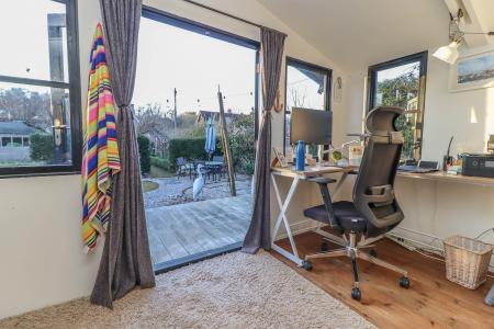 SUMMER HOUSE/OFFICE Central part glazed doors. Internally insulated with windows on two aspects. Exposed timber floorboards. Decorated and ideal home office.