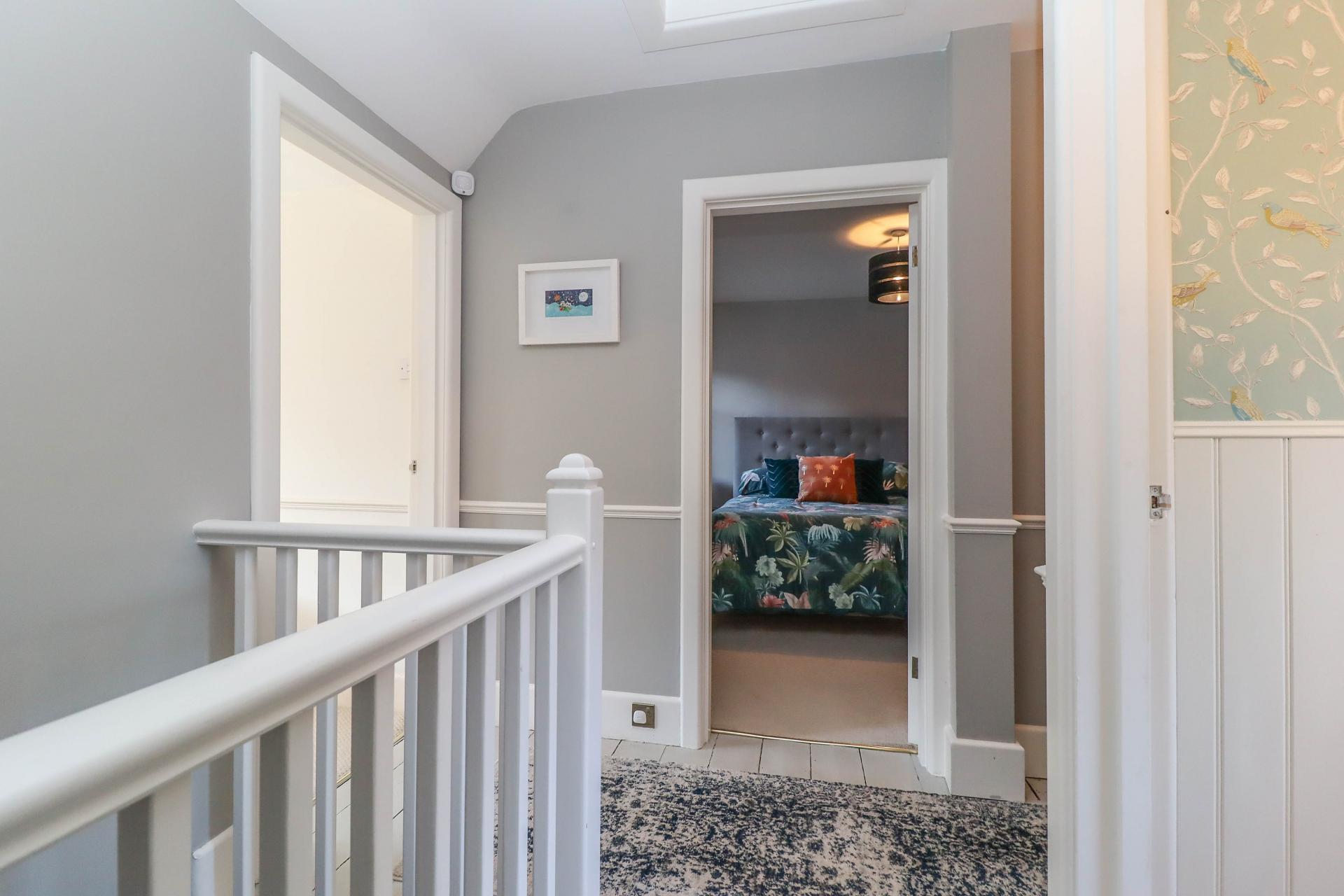 LONG CENTRAL LANDING Part with exposed balustrade overlooking stairwell. Painted exposed floorboards. Pendant light points. Window to rear aspect. Large loft hatch. Doors to: