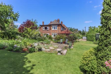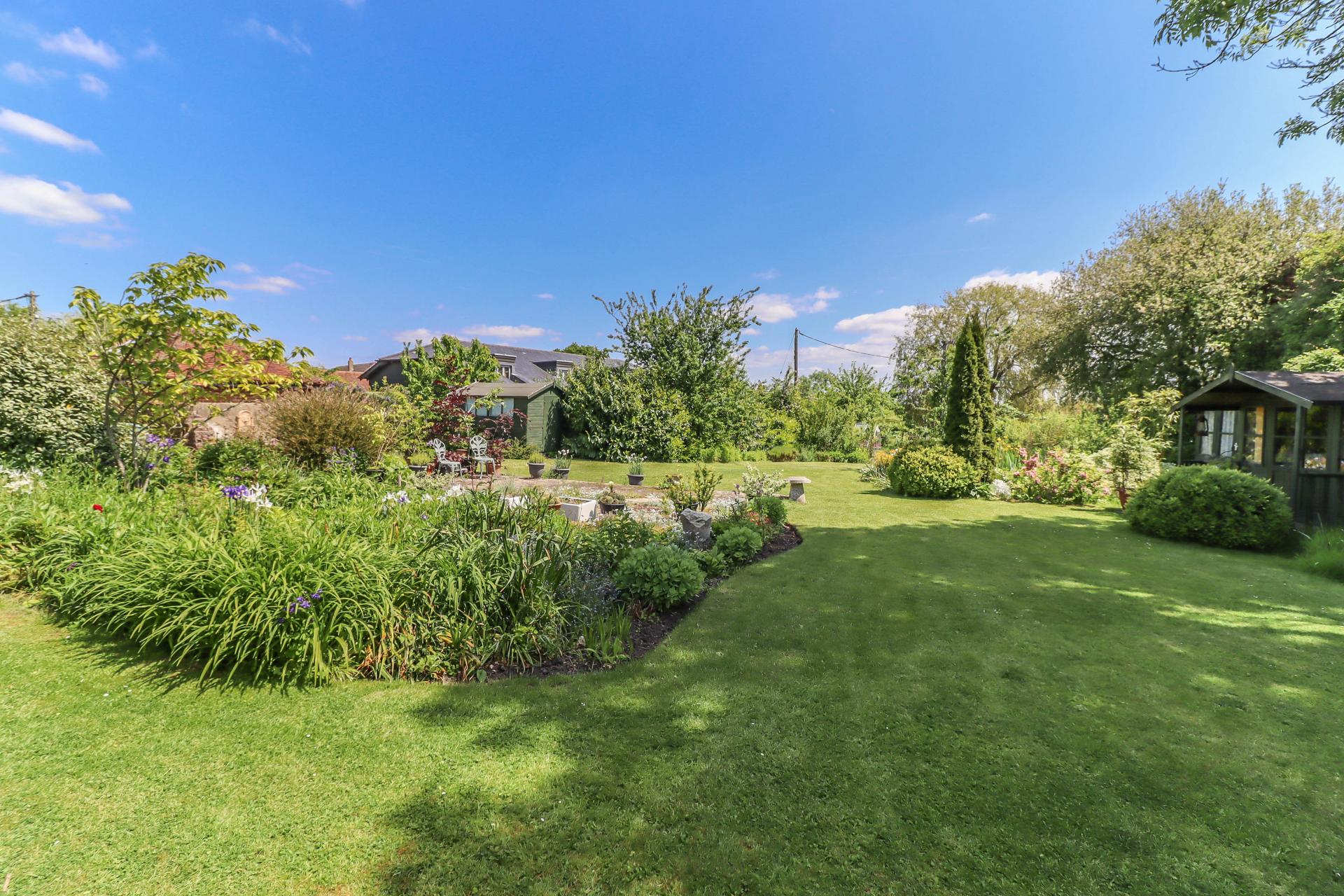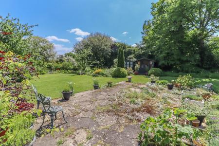 MAIN GARDEN This is a stunning feature of the property and lies to the rear and side of the house. Large concrete terrace areas surrounded by herbaceous borders. Shaped lawns. Specimen trees. Ornamental wildlife pond with surrounding rockery and borders. Two summerhouses. Garden shed. Arch with climbing roses leading to a Kitchen and Cutting Garden with raised beds and two greenhouses. At the rear of the formal garden there is a large area of: