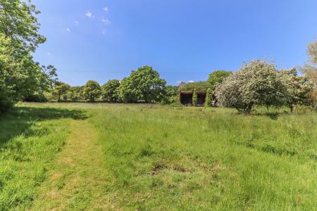 MEADOWLAND The first area is cut regularly and kept as a large lawn whilst the surrounding areas are left mainly unmown and feature an abundance of wild flowers and mature specimen trees including oak, weeping willow, crab apple and horse chestnut. The paddock area enjoys privacy and is surrounded by high hedging and trees.