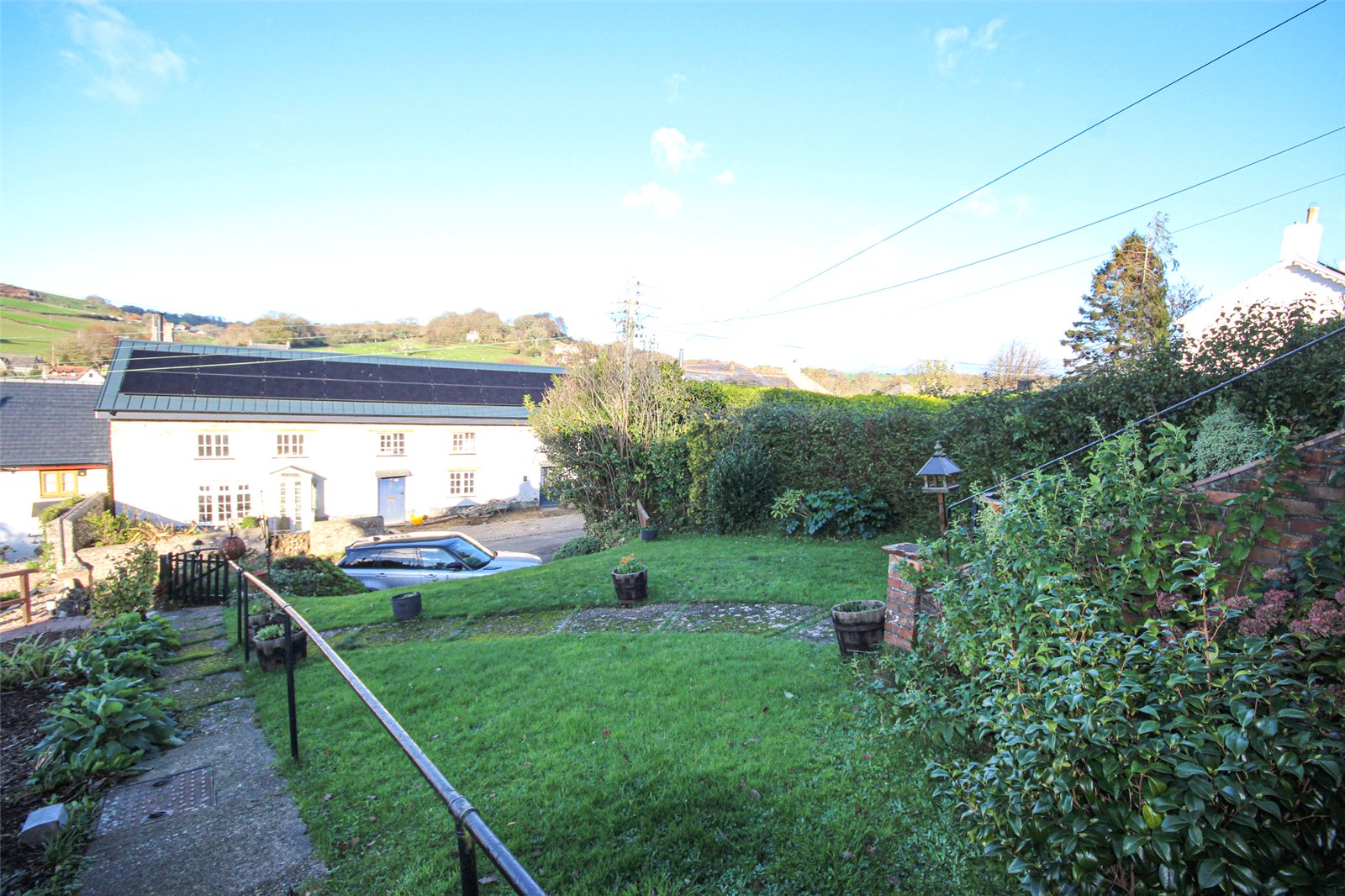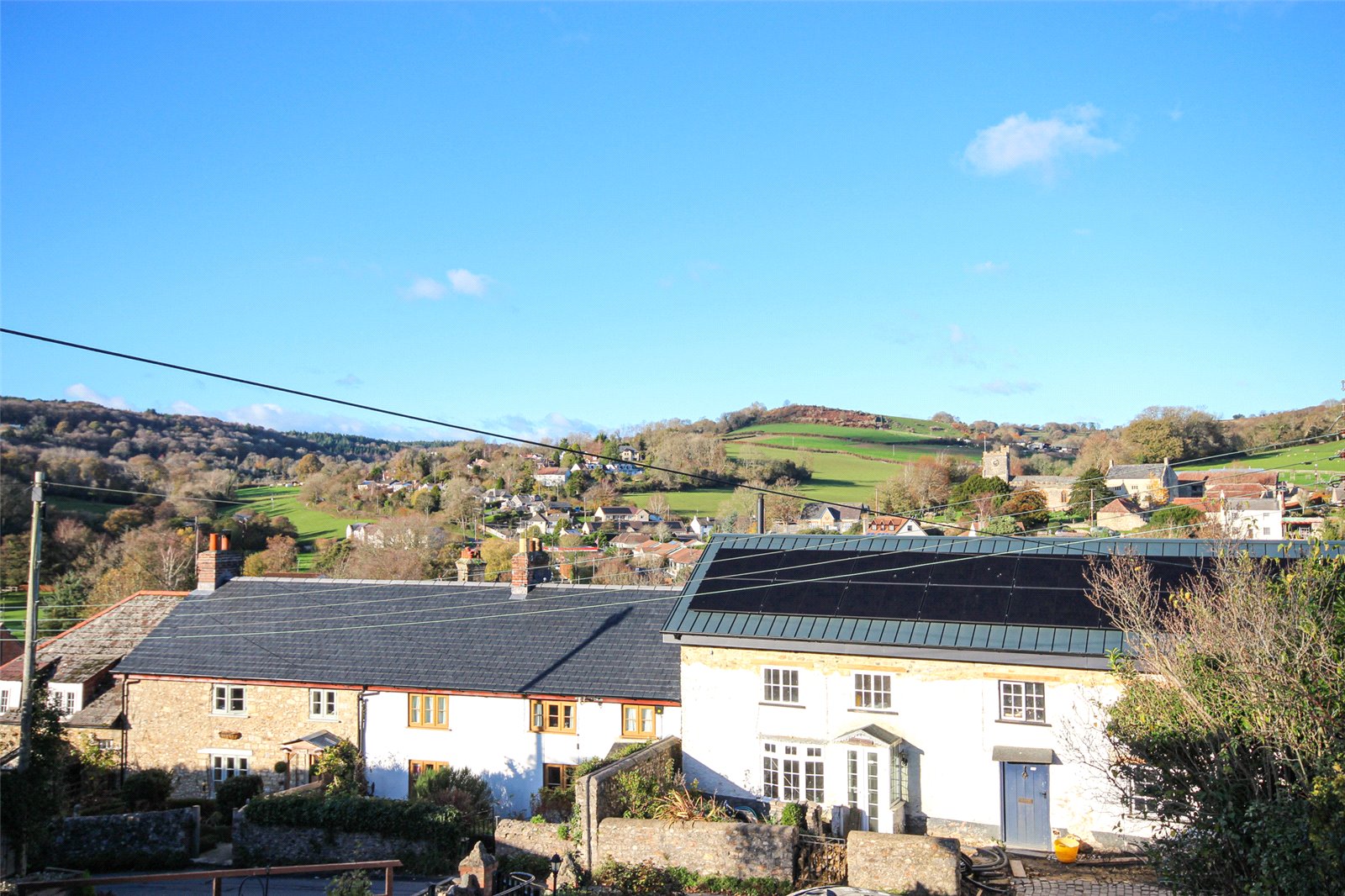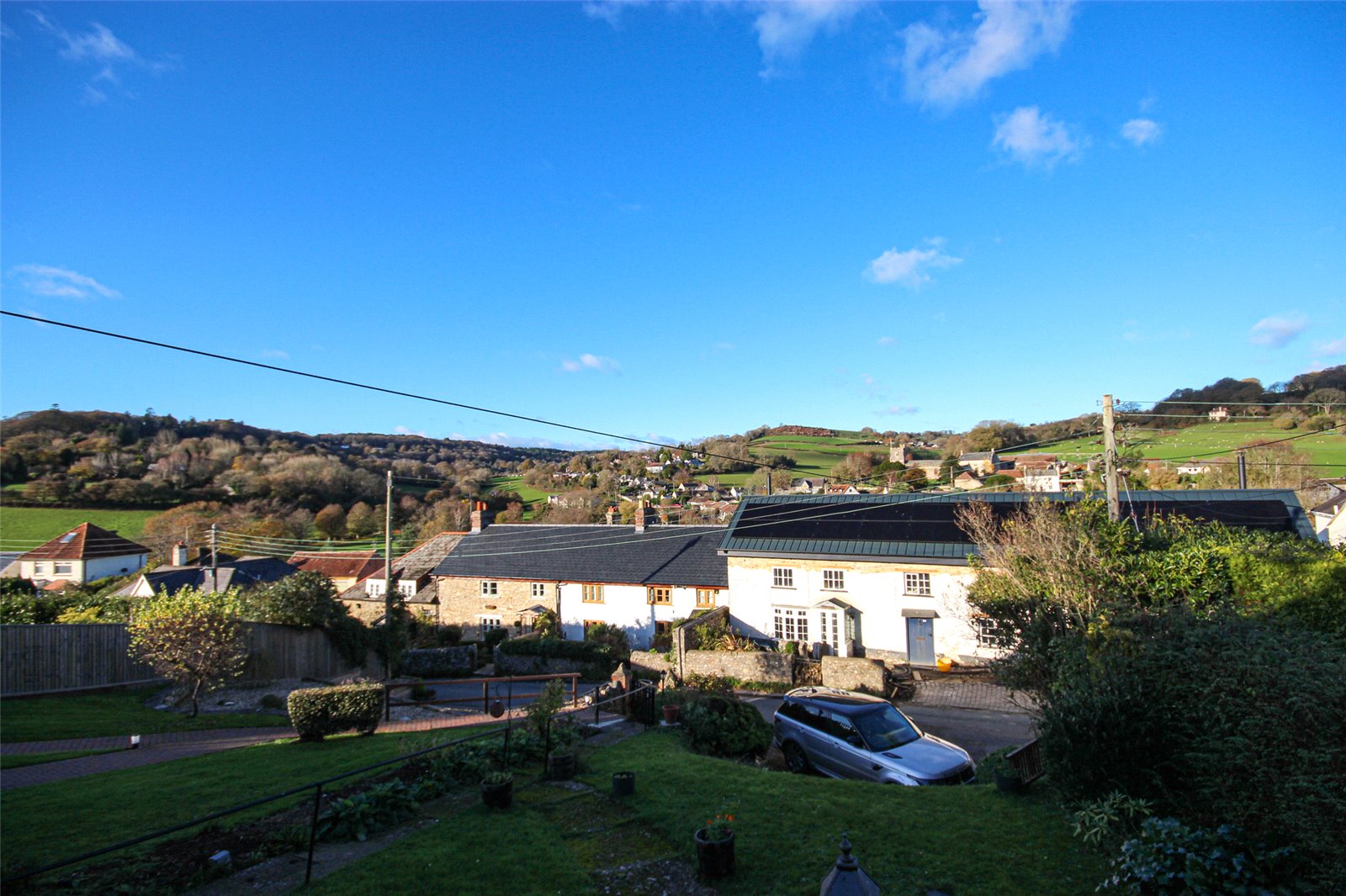 A two bedroom detached bungalow with far reaching views across the pretty village of Uplyme with parking and front and rear gardens.