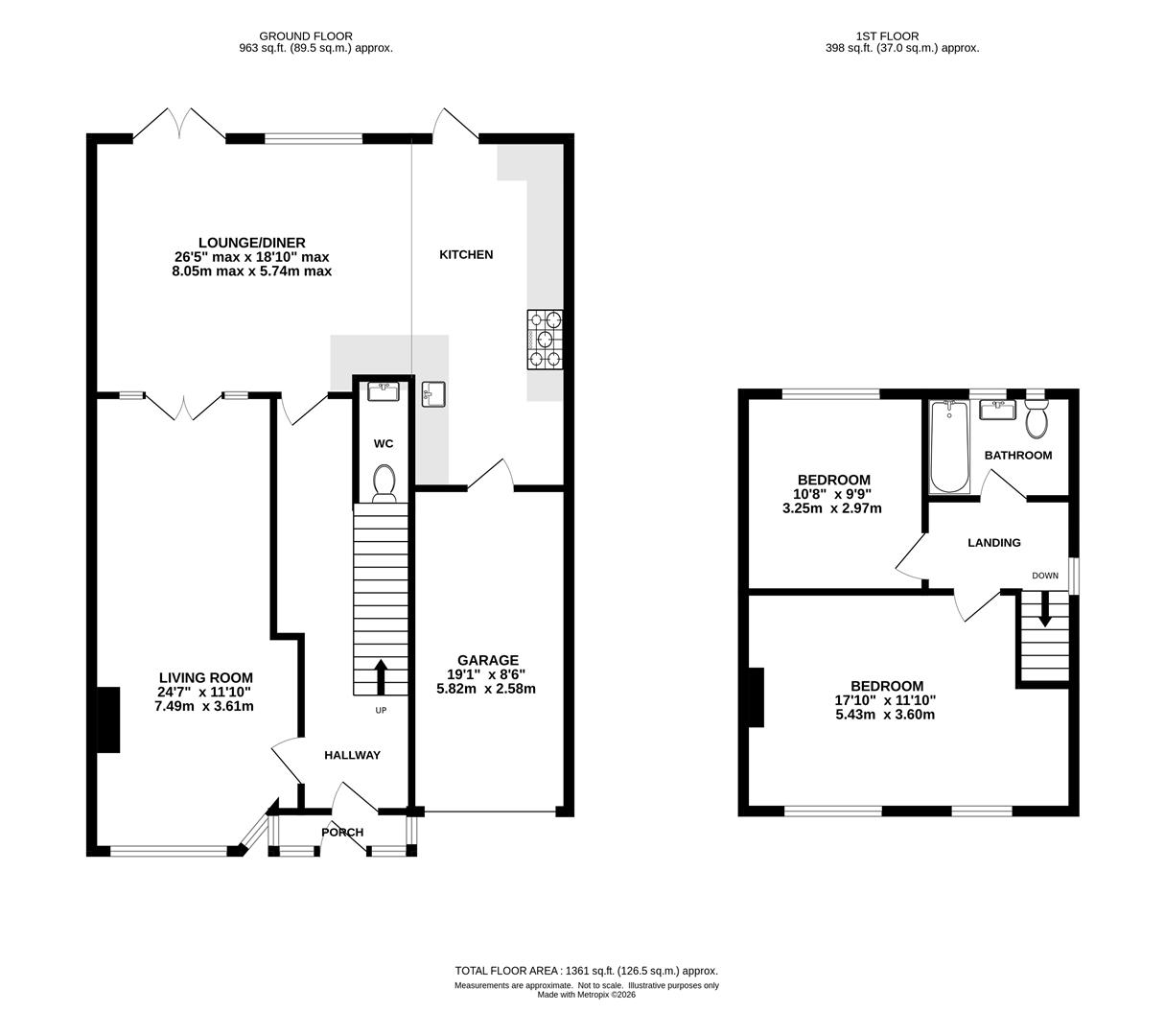 To the first floor, the landing provides access to two well-proportioned bedrooms and a stylish family bathroom.