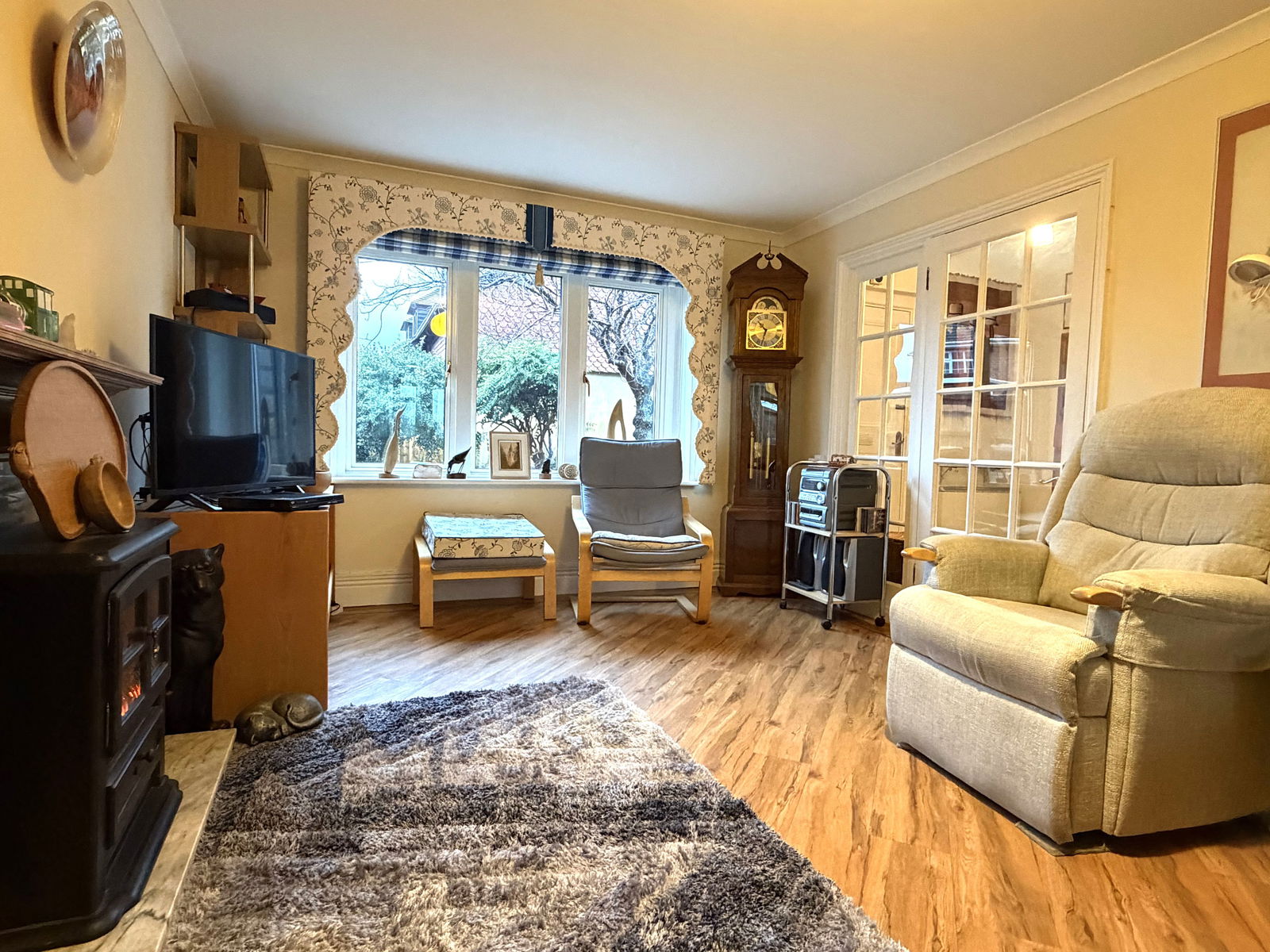 Double glazed windows, wall mounted electric heater, double doors opening onto the communal garden and stunning viewings of the Ham.