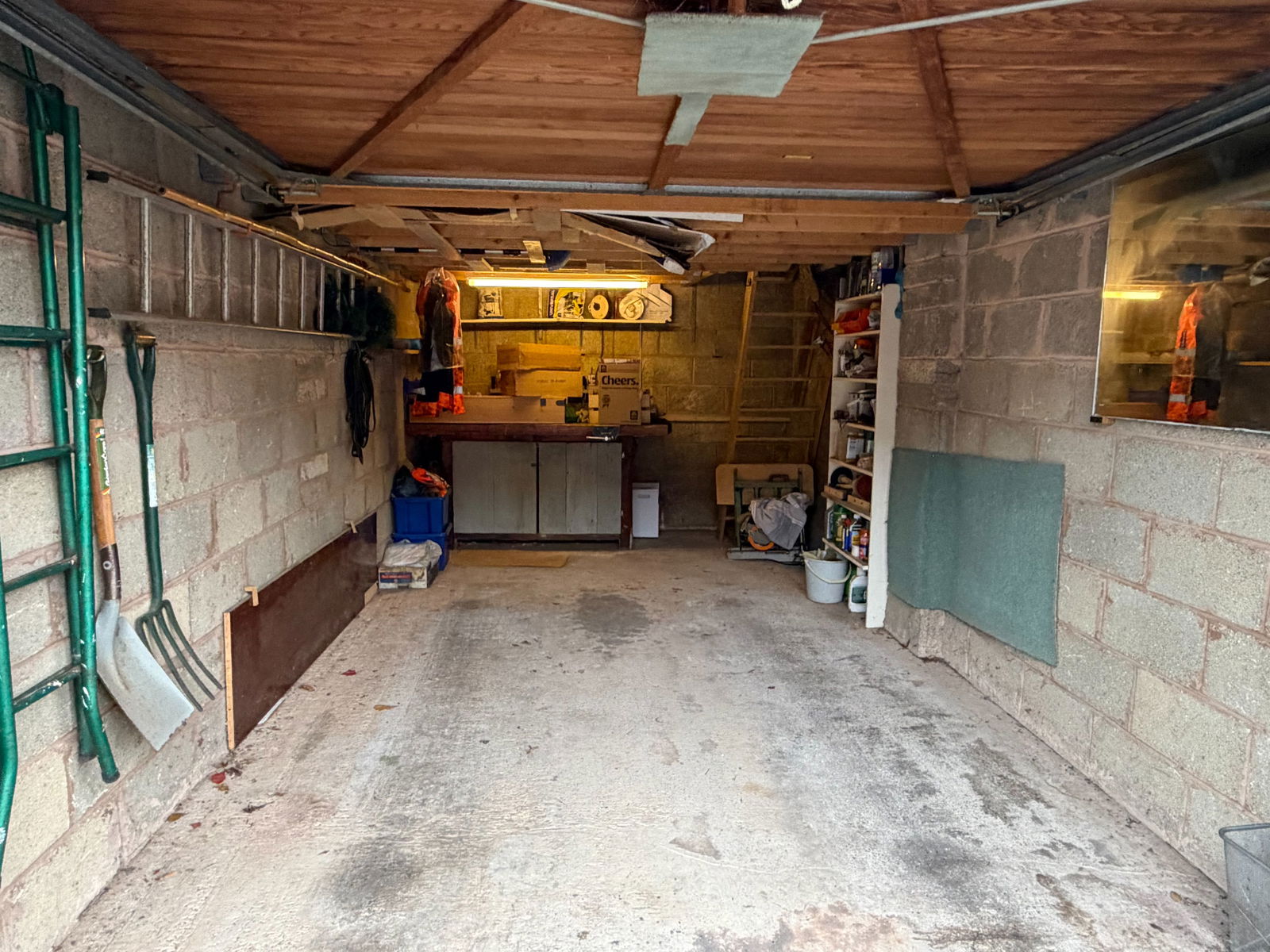 Garage also comes with an additional room above which can be used as a work room or just for additional storage.