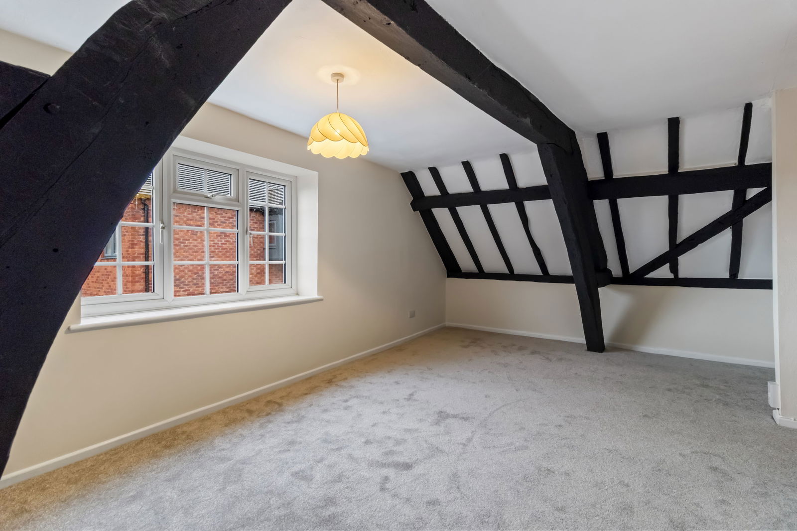 UPVC double glazed window to the front aspect, ceiling light, radiator, power points, exposed beams.