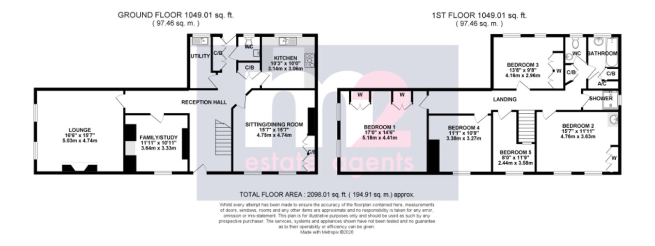 - 4 double bedrooms & single room/study
