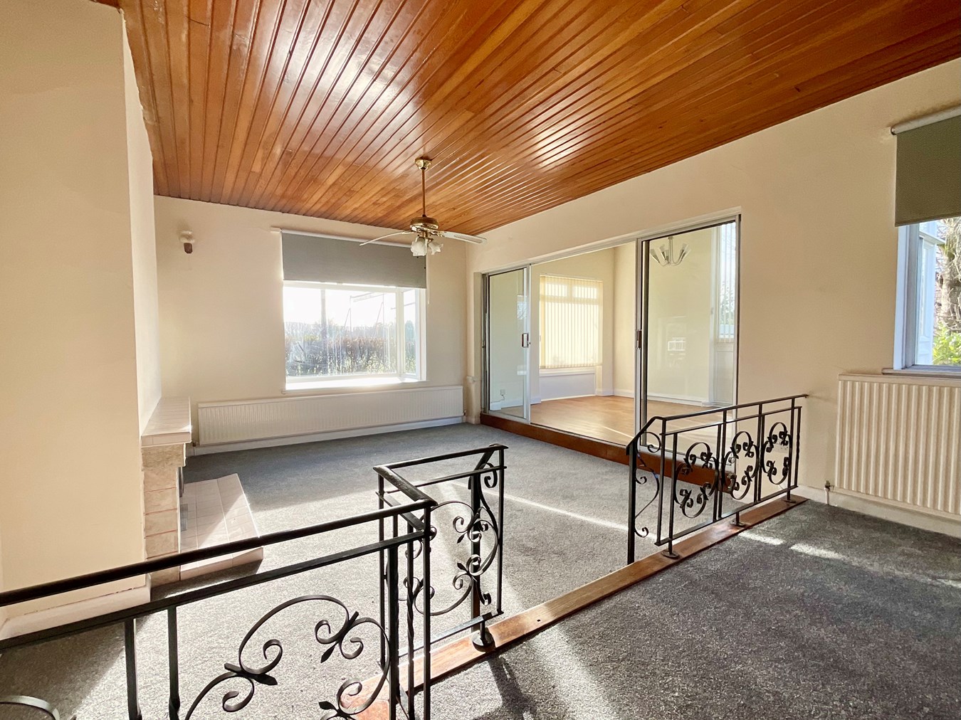 The main living area features a south facing split level lounge with box bay window. Stairs lead to a bright dining room with windows to all elevations and access to the garden. There is a refitted kitchen with built in oven & hob, boiler room and utility room.