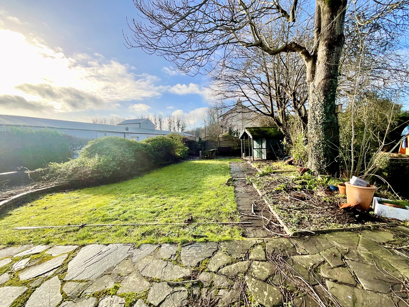 The property occupies an exceptional corner plot with low maintenance paved gardens with inset flower beds to 3 sides. A driveway provides parking with further garden beyond laid mainly to lawn with bordering flower beds and green house. All enclosed by hedging, fencing and walling.