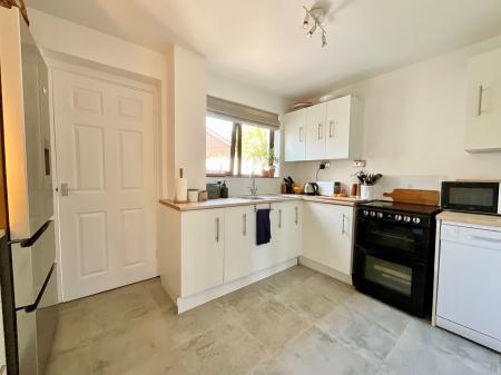 To the front of the property is a communal parking area. The rear garden features a seating area leading to a level garden laid to lawn all enclosed by fencing with gate to rear lane. The garden backs on to open fields.