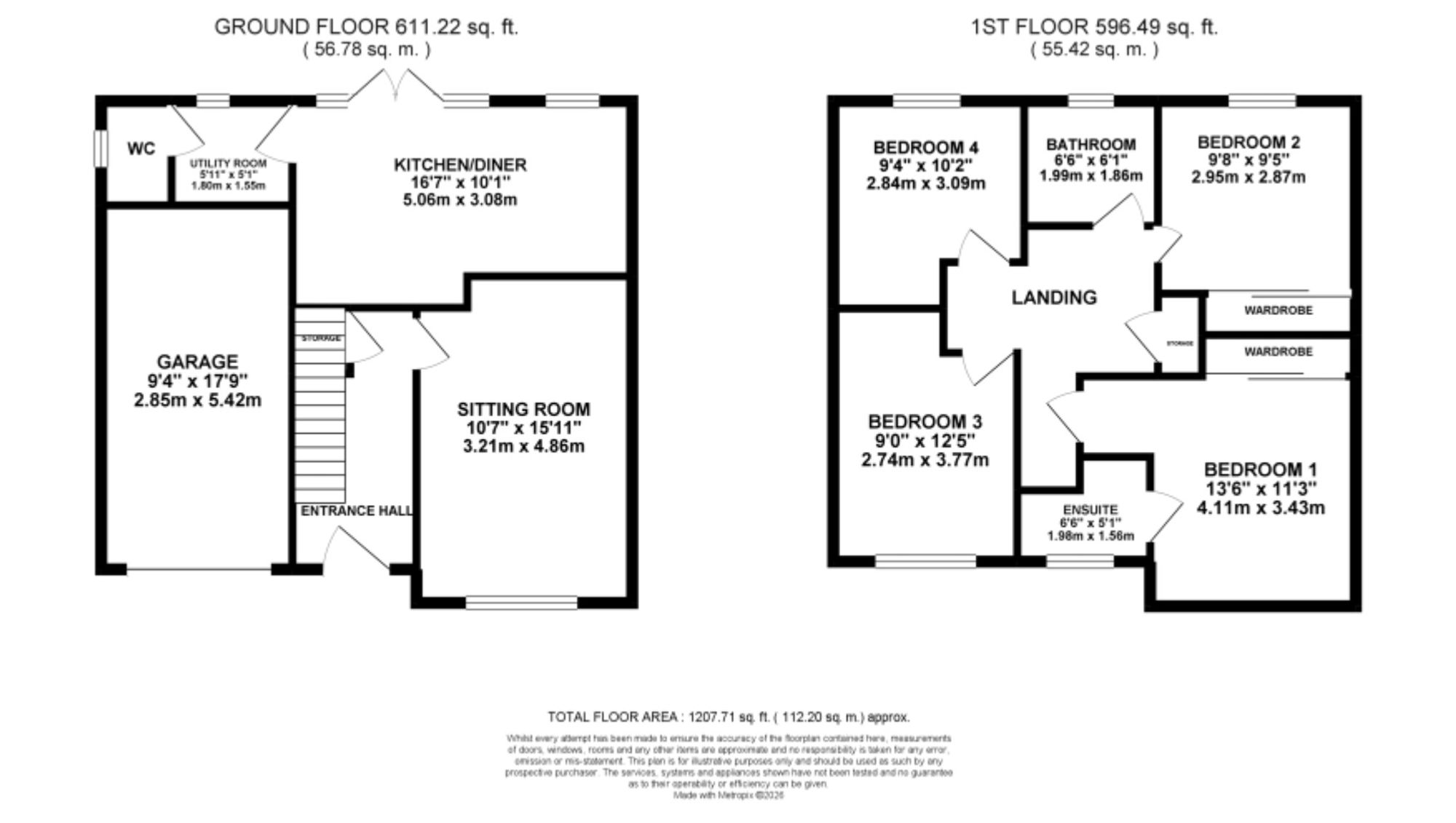 - Four double bedrooms upstairs, including one with an en-suite and two with fitted wardrobes.