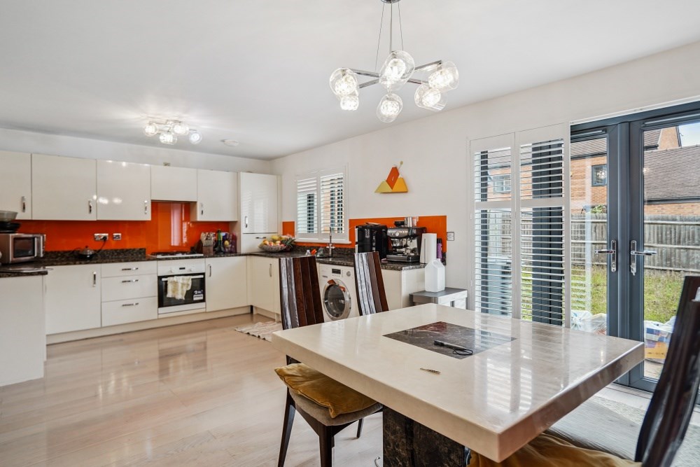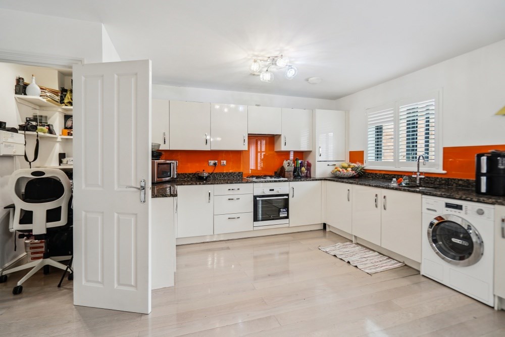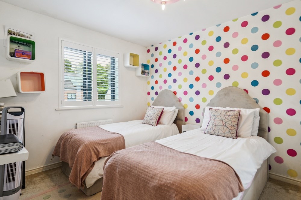First Floor Upstairs comprises four well-proportioned bedrooms. The master bedroom, located at the front of the property, features a modern en-suite shower room. Bedroom two includes fitted wardrobes, while bedroom three comfortably accommodates a double bed. Bedroom four is a good-sized single – perfect for a home office or nursery. A contemporary family bathroom completes the first floor.