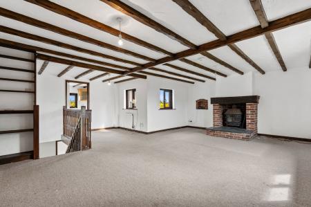A light dual aspect room with double glazed windows in UPVC frames to front and rear. Super feature woodburner set in brick built fireplace on slate hearth. Beamed ceiling. 3 radiators. T.V. point.