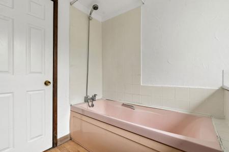 Comprising panelled bath, inset wash hand basin with vanity surround. Low flush W.C.. Space and plumbing for automatic washing machine. Cupboard housing oil fired boiler supplying central heating. Opaque pattern double glazed window in UPVC frame to side.
