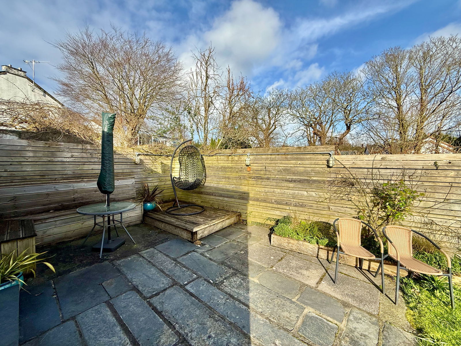 As mentioned there is no actual allocated parking with just street parking only for this cottage. The garden is lovely and situated at the rear with good size slate patio, timber decking, seating area and outside lighting all enjoying a lovey sunny aspect with views towards the church. Level lawn to side. Raised flower beds. All enclosed with fencing.
