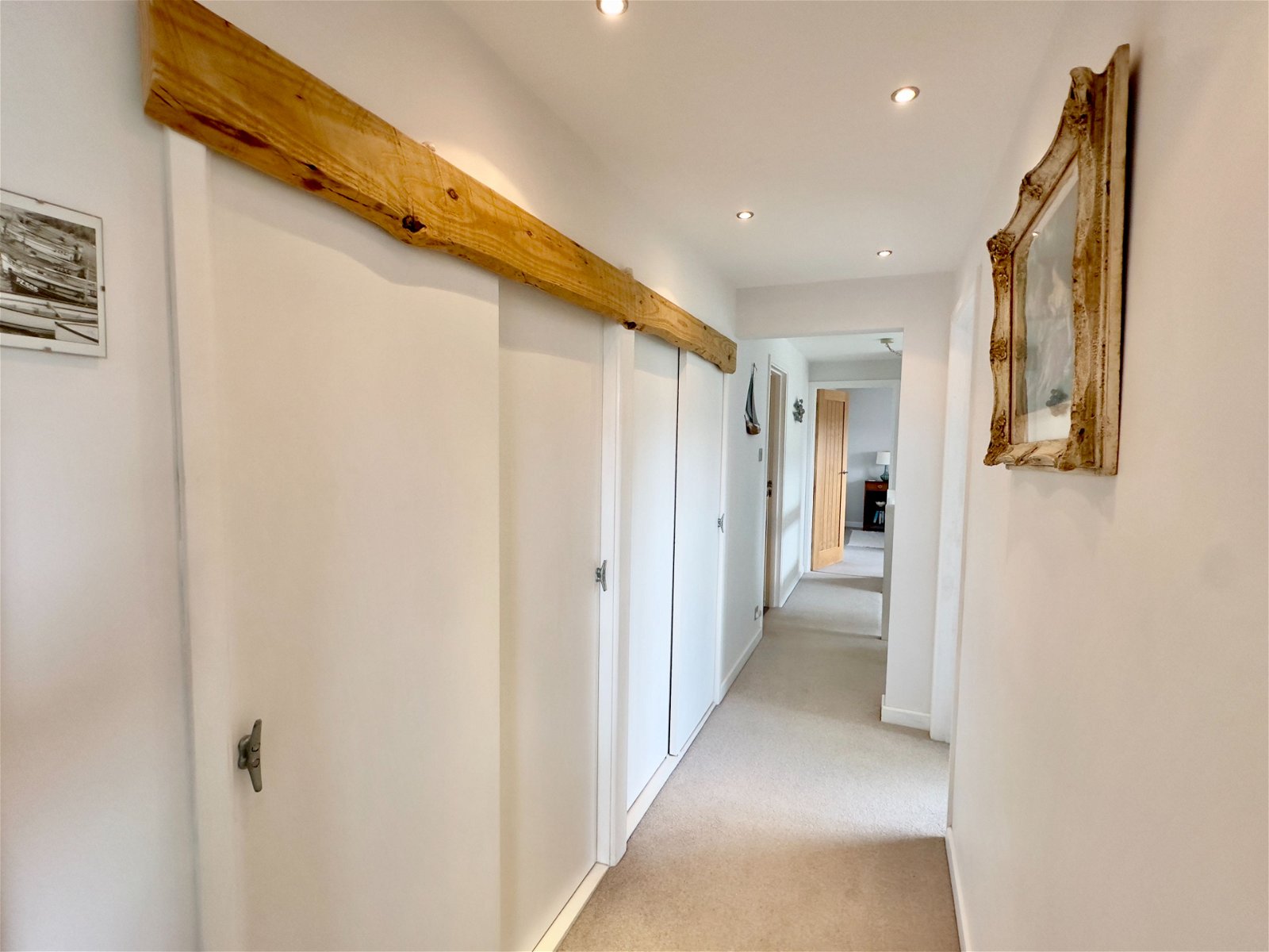 On the first floor there are three large south-facing bedrooms with views across the open countryside. Bedroom one is double aspect with a built in wardrobe and en suite shower/wet room with walk in shower, WC, wash hand basin and towel rail. Bedroom two also has built-in wardrobes and large basin. Bedroom three is a spacious twin bedroom. This floor also has a large family bathroom with double basins and a custom shower bath. There is also plenty of wardrobe and storage space situated along the inner landing which also houses the large closed hot water cylinder.