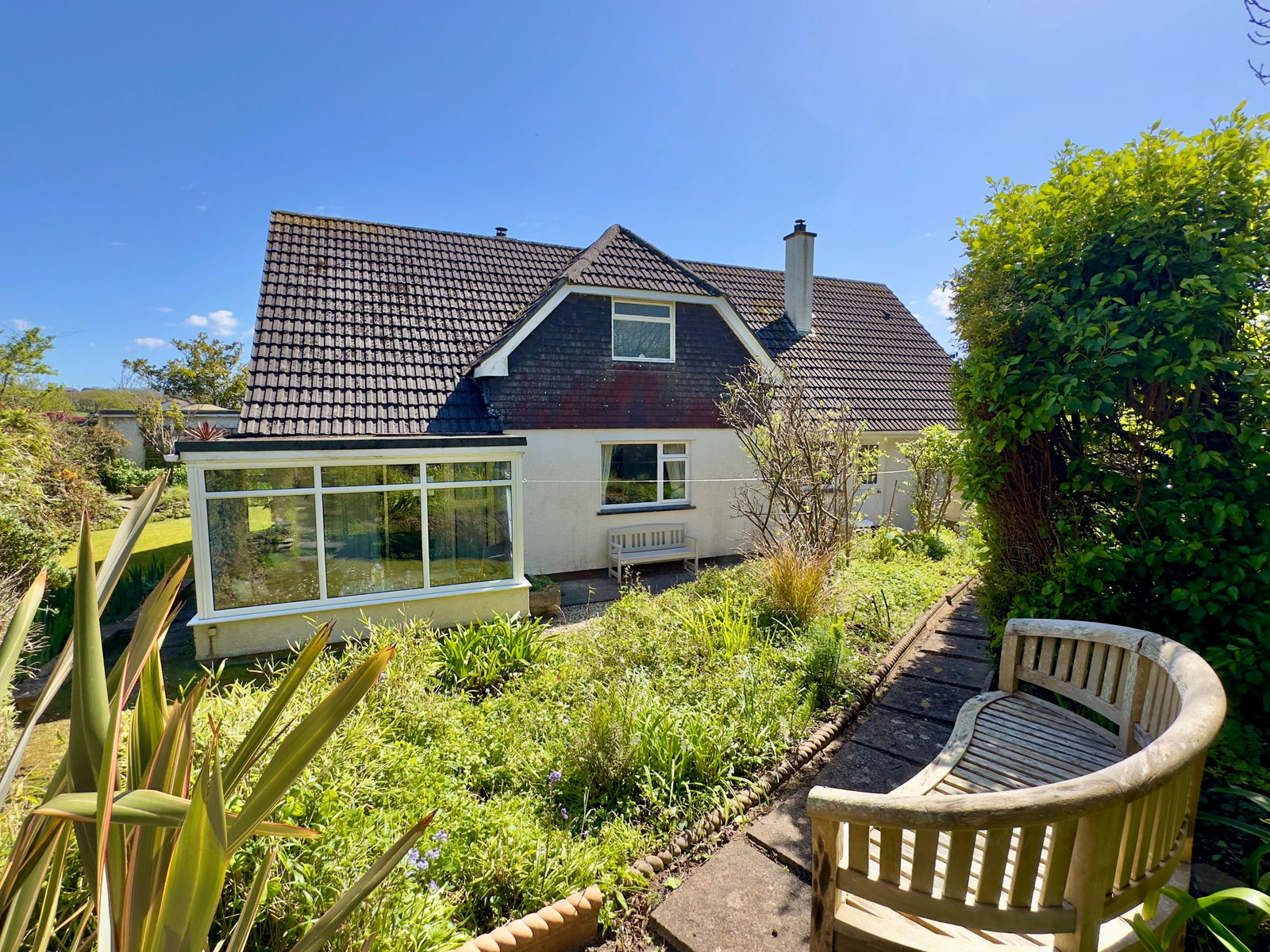 Kilcarreg was built in 1972 and has remained within the same family since. It was refurbished in 2016 being rewired, a new kitchen and bathroom installed, and a ground floor shower room. There is room for two cars on the driveway which leads to the garage door. The garage has been shortened and is now a useful storeroom housing an oil-fired boiler. The front garden has high hedges offering privacy, with the garden continuing down the side and rear of the property. There are two tiers with paths running down the side and along the rear garden. On the higher tier is a greenhouse which if not required would make a lovely, sheltered seating area to catch the evening sun or maybe an ideal place for a hot tub. On the far side of the rear garden is a block-built store and workshop with a covered walkway back to the front driveway.
