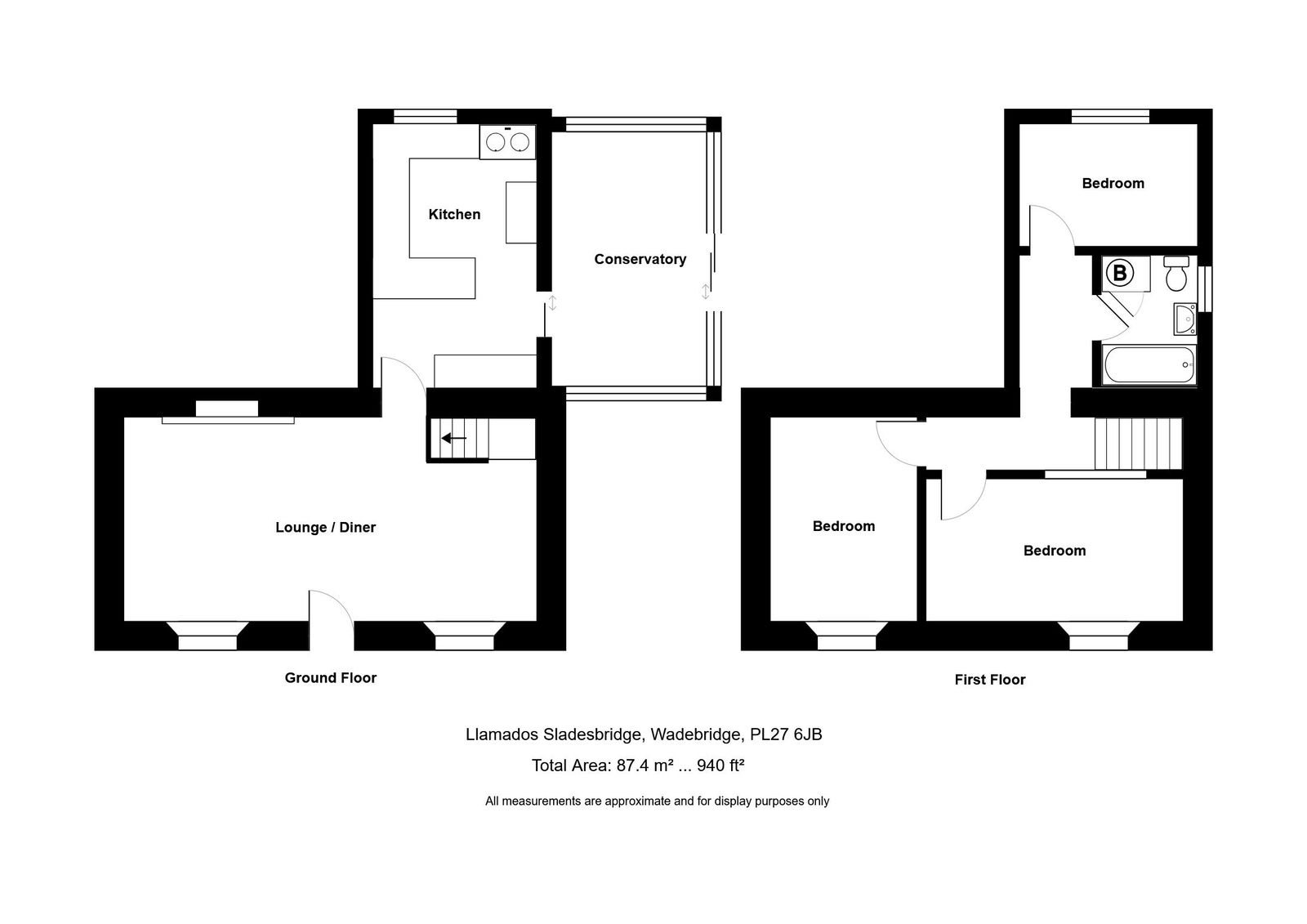 Llamedos Cottage is a spacious 3 bedroom traditional end terraced cottage situated in this popular area just outside Wadebridge. We feel that the property has been attractively priced bearing in mind the size, location and condition. It would appear that some of the wiring is older style. The main cottage we understand is of stone construction under a slate roof with a more recent extension at the rear. From family photographs it would appear that the extension was not there in a photograph dated 1972 but was definitely there when the family purchased the property in the early 1980's. Since their ownership they have added a conservatory/sun room as can be seen on the attached photographs/video tour.