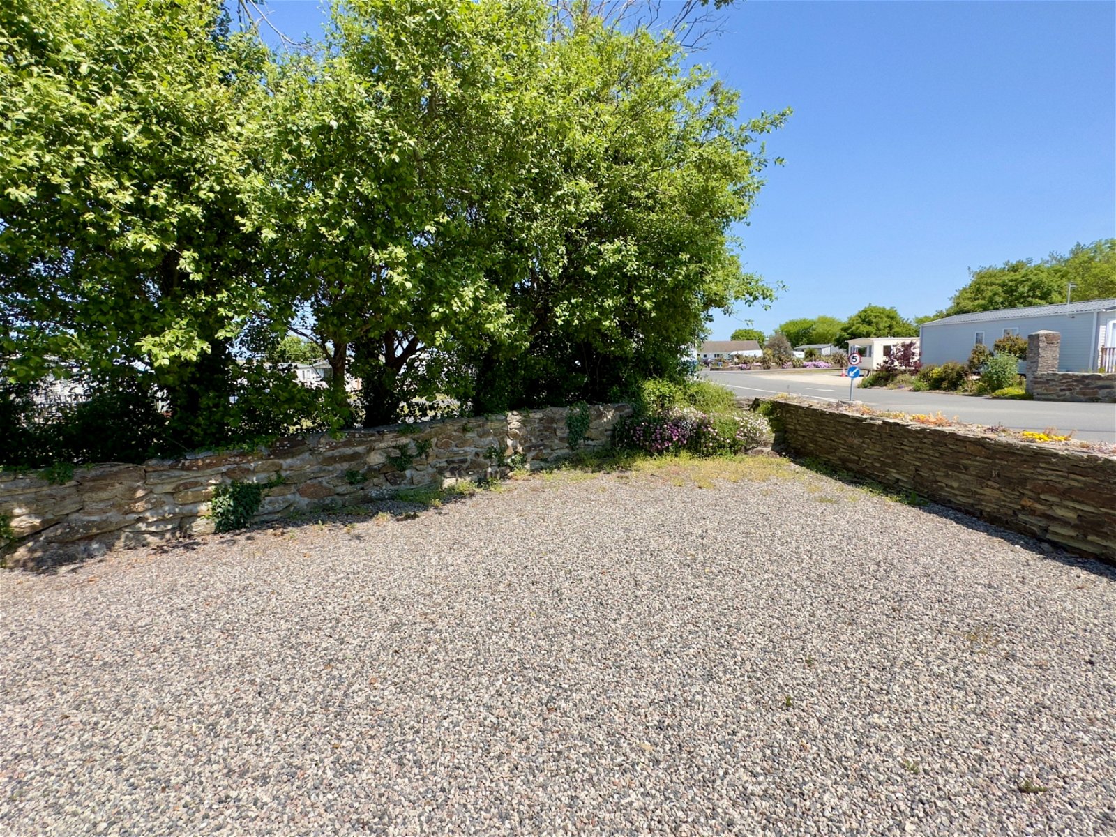 OUTSIDE - Cornish stone boundary wall to two elevations with adjoining timber fence boundary. Low maintenance granite chippings garden surround the property.