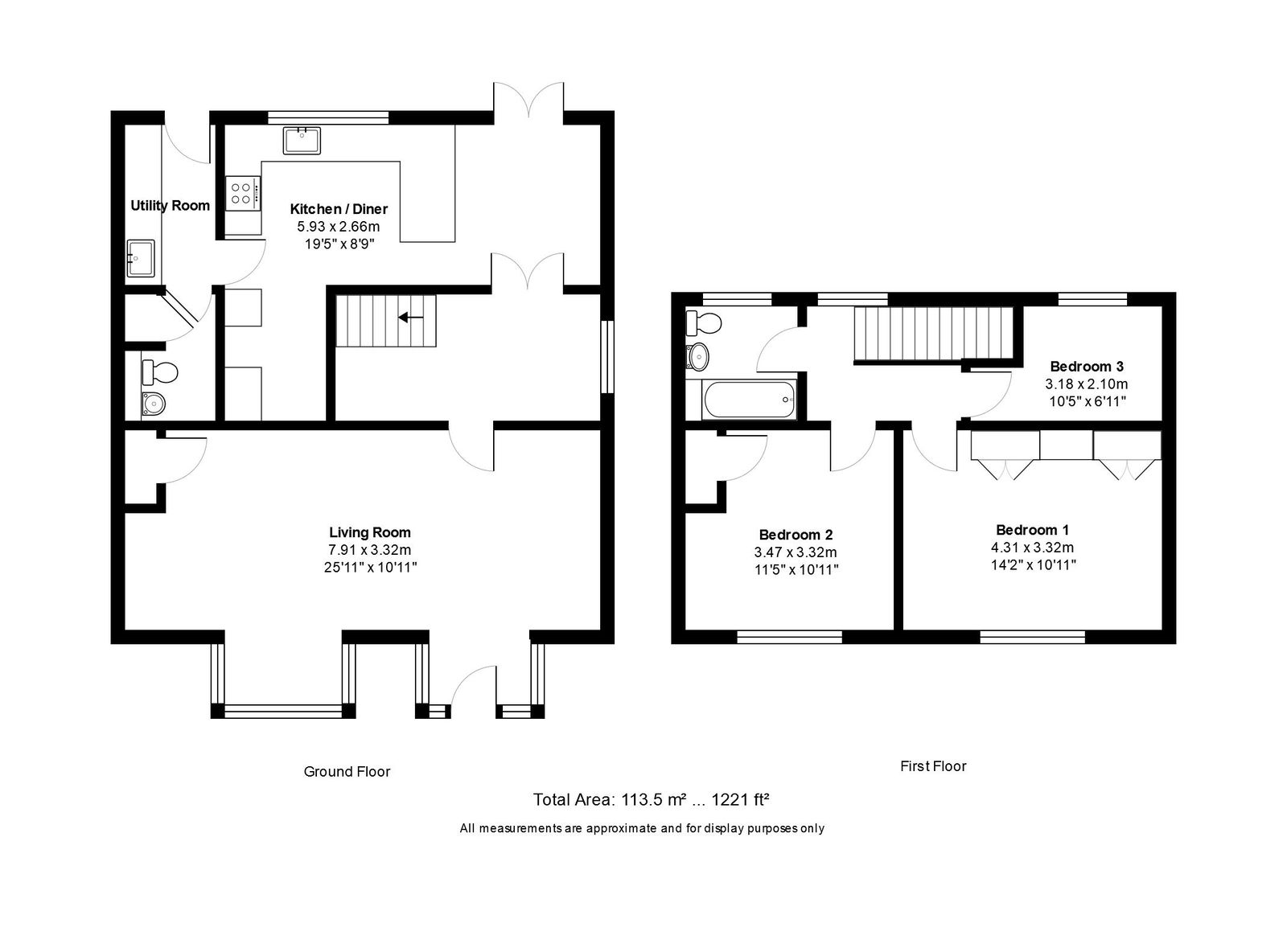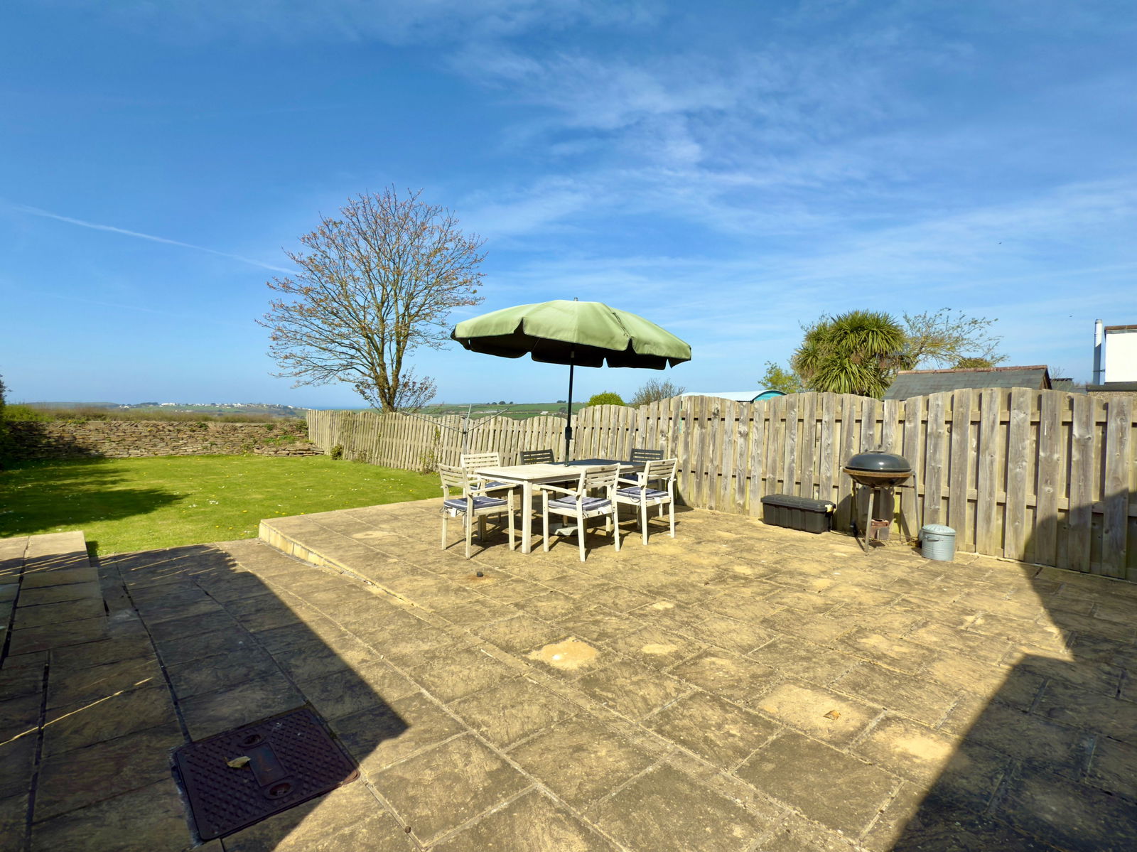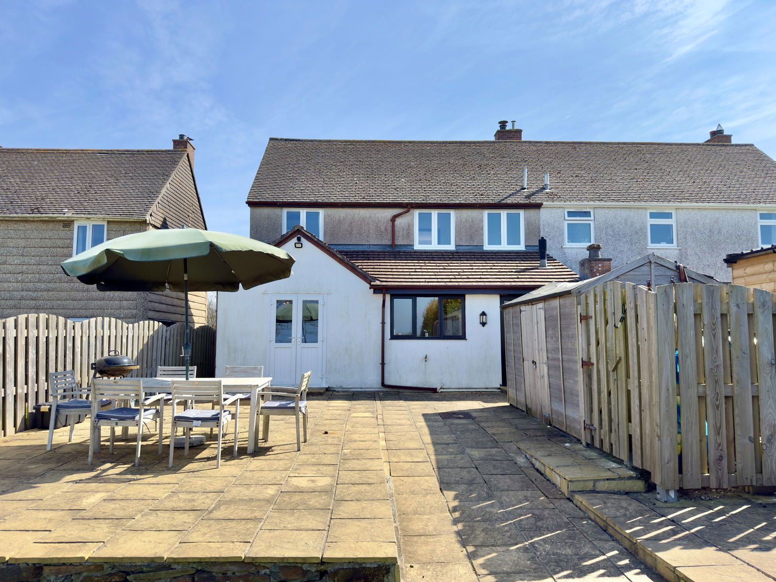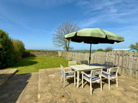 The rear garden has a large patio area across the back of the house and then a large lawn with high fencing for privacy and backs onto open fields at the rear. The property is ex-local authority and has been holiday let by the current vendor.