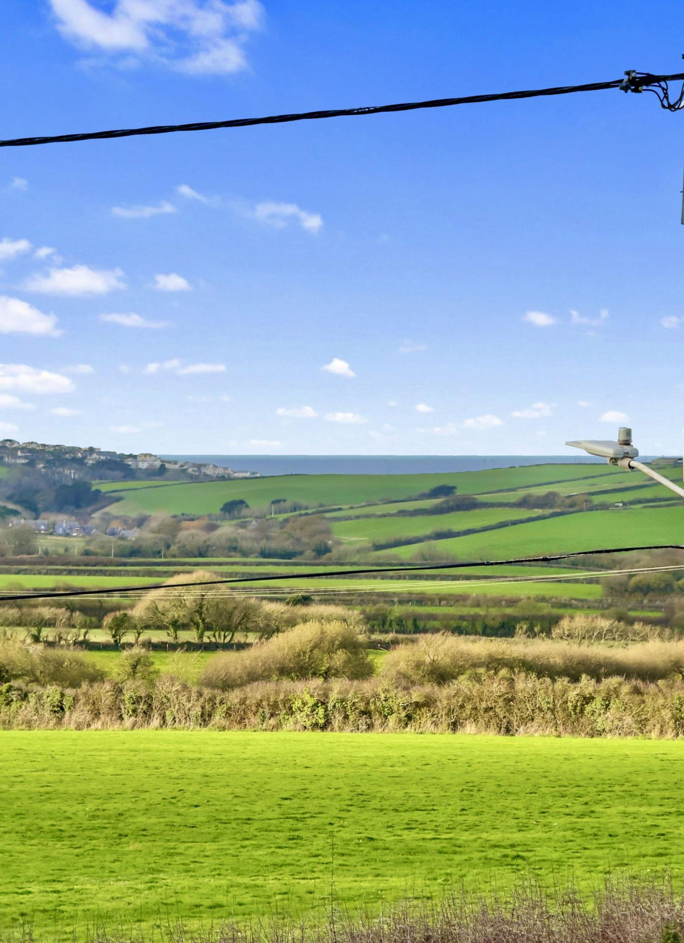 On the first floor there are two spacious double bedrooms, the larger of which is at the rear of the property with plenty of built in storage. Between the bedrooms is the new shower room with large walk in shower, WC and hand basin. The front bedroom has panoramic views across the countryside leading down to Polzeath with a distant sea view.