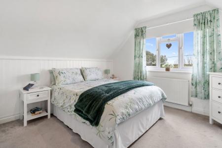 On entering the front door there is a very useful large storage cupboard for all coats and boots in the hallway which opens into a central area with turning staircase with galleried landing. There is attractive oak flooring to the hallway, sitting room and ground floor bedroom. The sitting room is to the front of the property and is dual aspect with an open countryside outlook. Bedroom 3 is a double bedroom with a side outlook over the neighbouring field which currently has horses grazing in it most of the time. Adjacent to this bedroom is the ground floor bathroom with a thermostatic shower over the bath, WC and hand basin. To the rear of the property is the kitchen diner with window to the side and patio doors to the rear. This room has a smart white kitchen, ceramic sink with recently tiled floor and large range double oven cooker with 5 ring and plate warming hob. The fridge freezer is also integrated within the kitchen units. Off the kitchen is a large bright utility room with 2nd ceramic sink and space for washing machine, tumble dryer and dish washer. There is a cupboard with hot water tank in and the external oil fired boiler is situated outside.