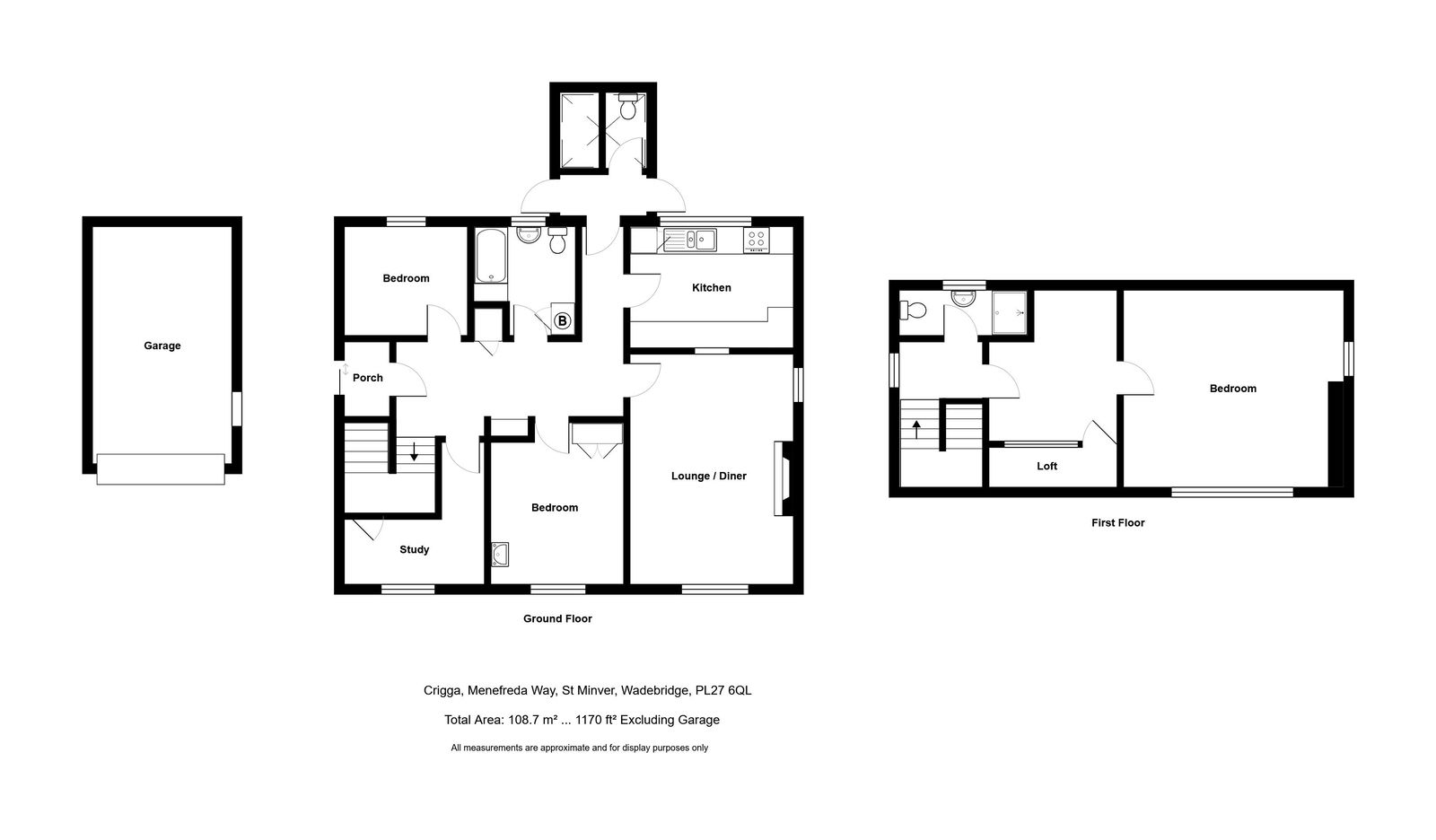 A very pleasant detached property in a good size plot with detached large garage just a short drive to the beautiful North Cornish coastline. Crigga in Menefreda Way is situated just off the centre of St Minver, a popular village with excellent public house, cricket club, garage and church close to Rock. It is a short drive to a number of beautiful beaches, bays and cliff walks.