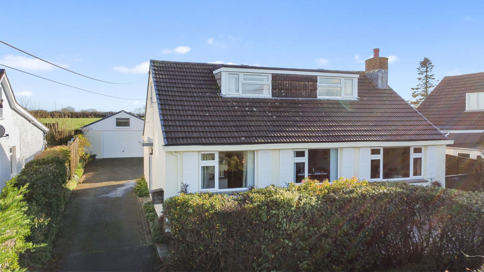 A detached dormer style property with detached double garage and distant sea views, situated in this pleasant area with a good size plot. Freehold. Council Tax Band E. EPC rating F.