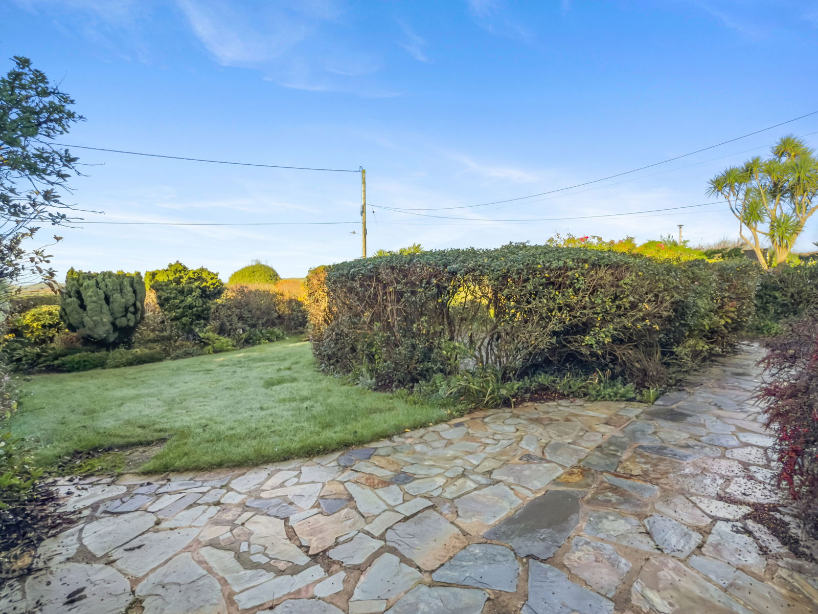 Steps lead to the rear garden with lawn, dilapidated old summerhouse and greenhouse. Fruit/veg garden at the rear with low block boundary walling backing onto open countryside. There is also a pleasant garden situated at the front of the property comprising a crazy paved patio area otherwise laid to lawn with attractive mature small trees, shrubs and flowers. A gate and path then leads around to the side path which leads to the rear of the property.