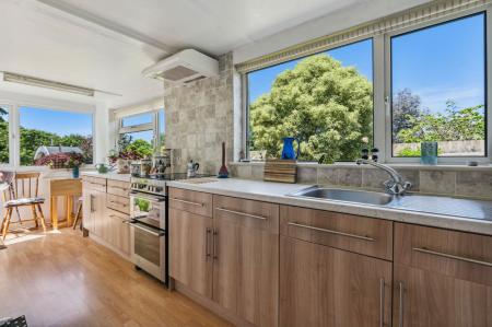 Fully equipped kitchen with 3 UPVC double glazed windows. Stainless steel sink. Stoves electric oven and hob. Extractor fan. Radiator. Small dining area. UPVC double glazed door leading on to rear patio and established rear and side gardens.