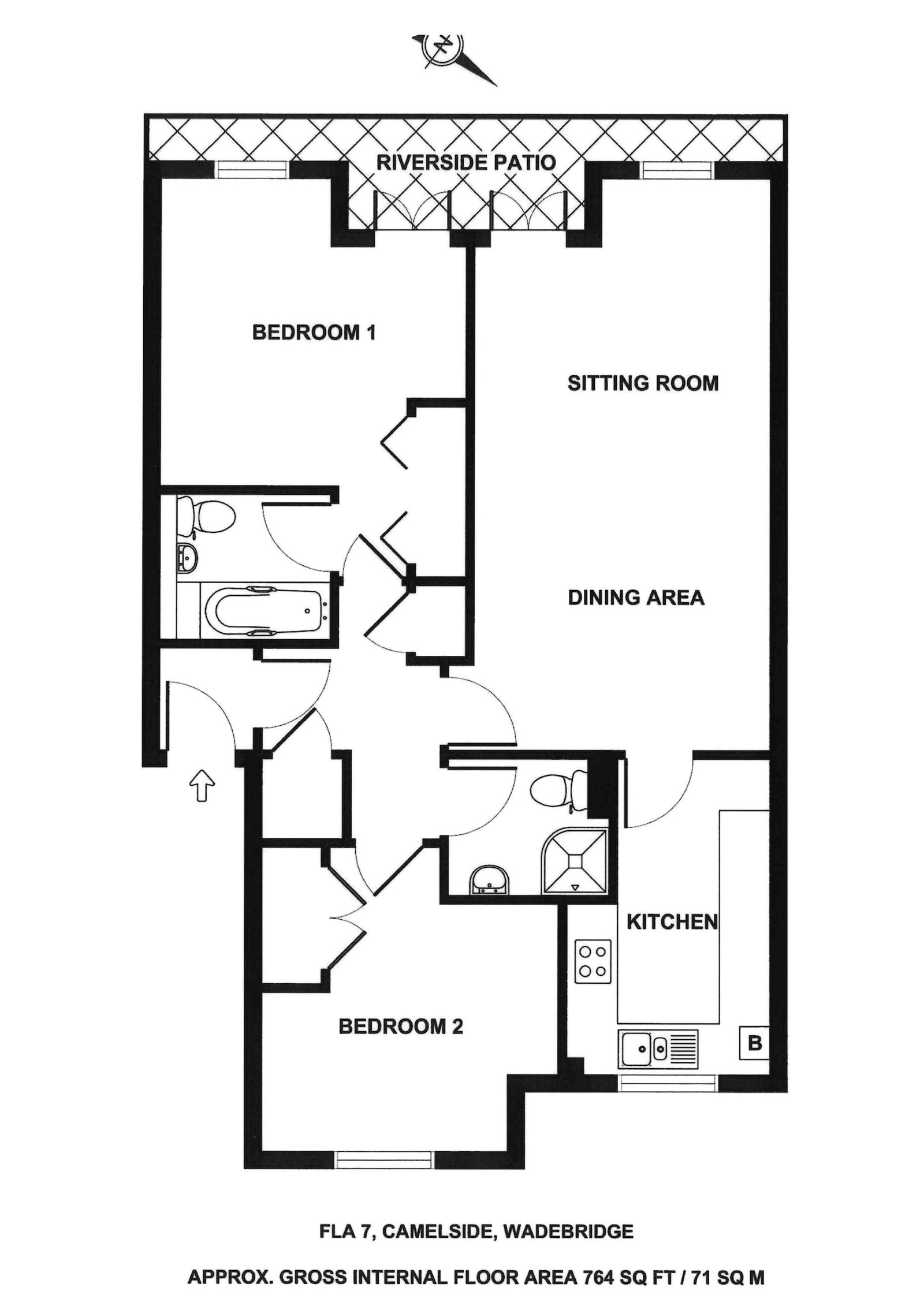 A 2 double bedroom ground floor apartment in a fantastic riverside location with balcony enjoying magnificent south facing views alongside the River Camel. Leasehold. R/V £1950. EPC rating C.