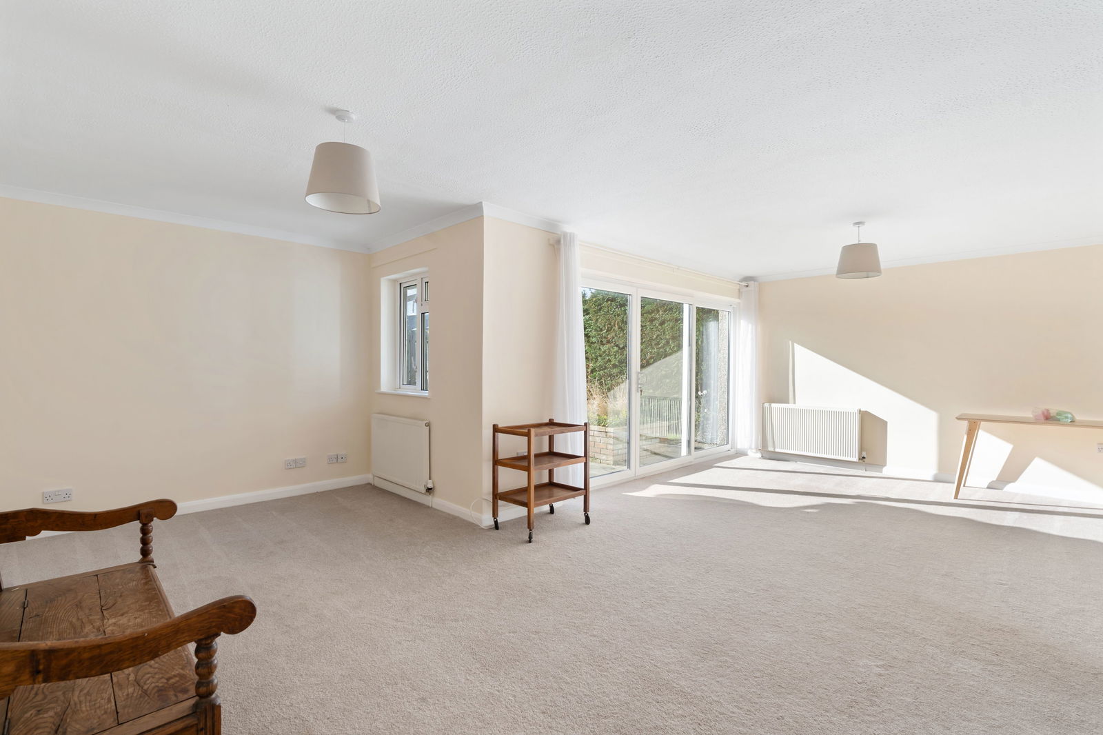 18 Rockhaven Gardens is a spacious 3 bedroom detached bungalow with garage set on an elevated plot with large front garden in an attractive small residential estate at the top of Rock in Cornwall. Freehold, EPC band D Council Tax Band E. There is parking for up to 3 cars on the driveway and the garage has light and power with a window to the rear. The front door comes into a hallway where glazed wall units let borrowed light in from the large sitting/dining room. This room has a 3.5m triple patio door giving access out to the rear garden. The garden is private with high fences and hedges, has a patio and a raised planter.