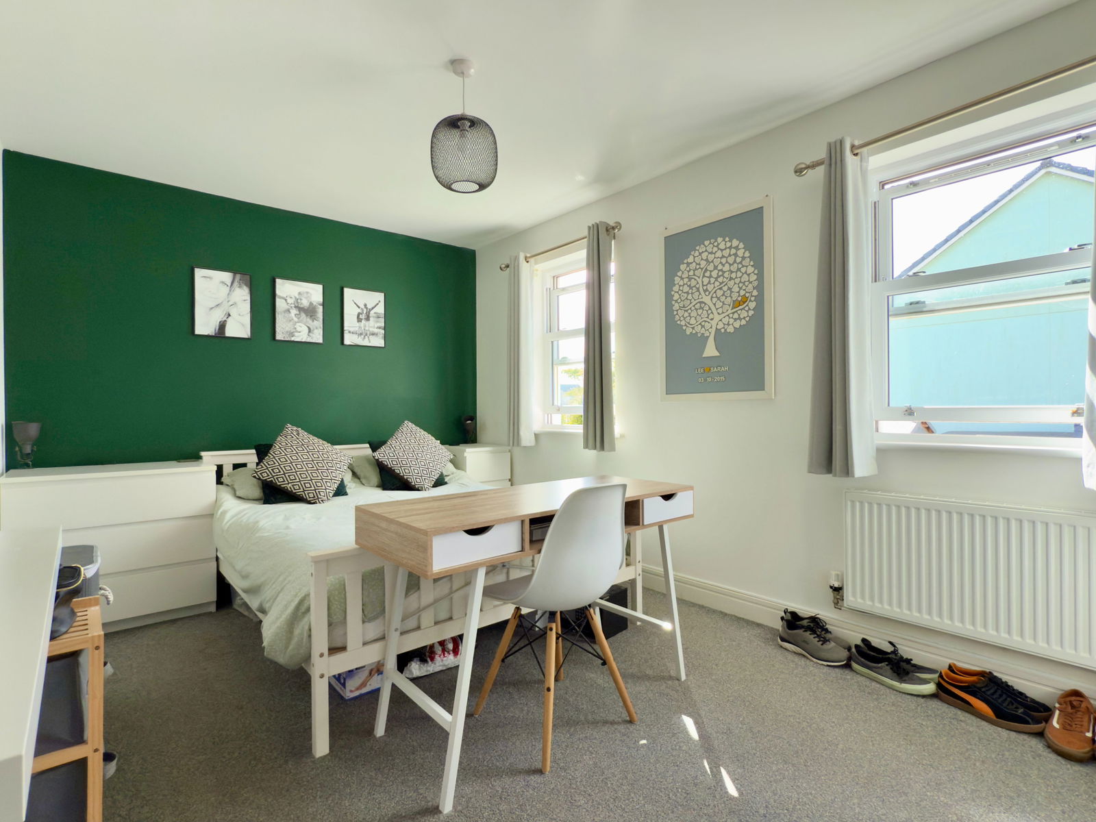 A lovely light double bedroom with 2 UPVC double glazed sash windows overlooking rear garden, radiator.
