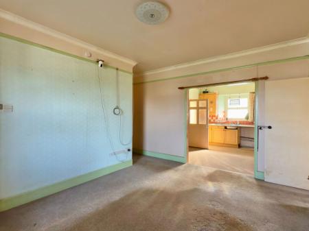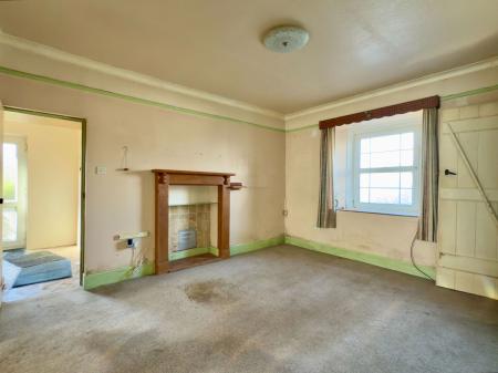 UPVC window to front (seal perished), stainless steel sink with single drainer, range of older style kitchen units (kitchen in need of replacement) and fibreboard ceiling. Whilst the Rayburn (range/heater) needs replacing, due to inability to obtain the necessary spares to service it, the vendors have informed us that it is currently connected to a chimney which is lined to connect to gas appliances. Opening through to
