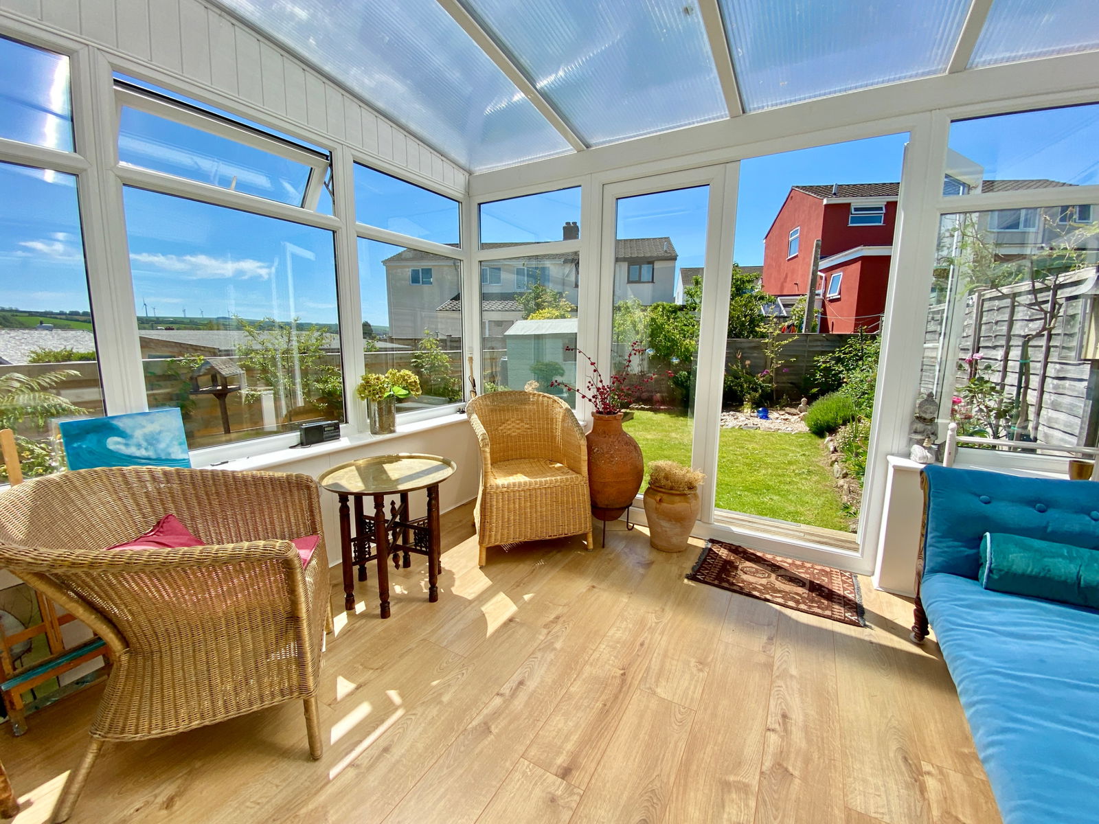 UPVC with opening windows, pleasant views towards St Breock Downs and double doors on to rear garden.