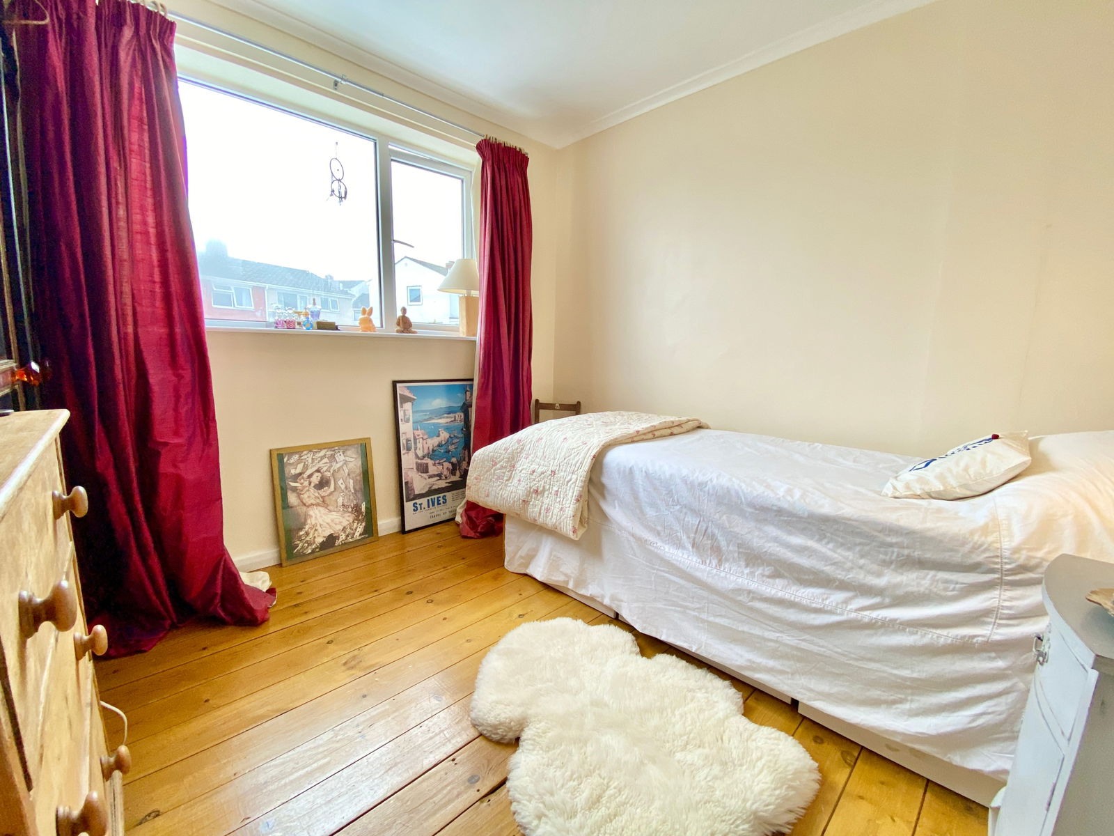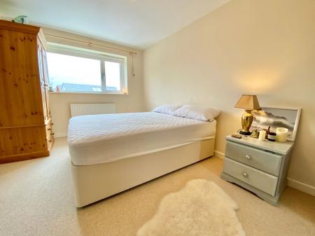 Attractive stripped timber flooring, radiator, feature window with some pleasant views over the top of the church and the woodland beyond.