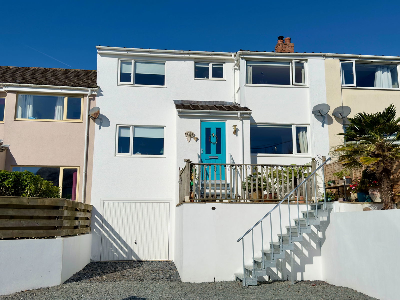 At the front of the property is a good size driveway with parking and turning area laid to slate chippings, outside tap, raised bed as mentioned. Leading to the garage (see later).