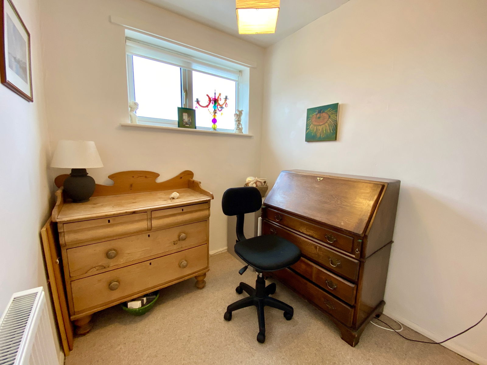 Radiator, high level window to front.