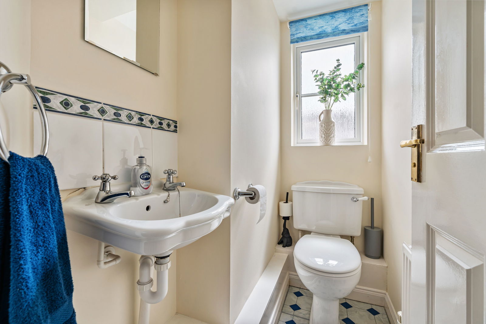 Opaque UPVC double glazed window to front. Low level w.c. Wash hand basin with tiled splashback. Radiator.