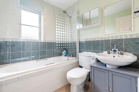 Panelled bath with shower over. Low level w.c. Wash hand basin. UPVC double glazed opaque window to front. Radiator.