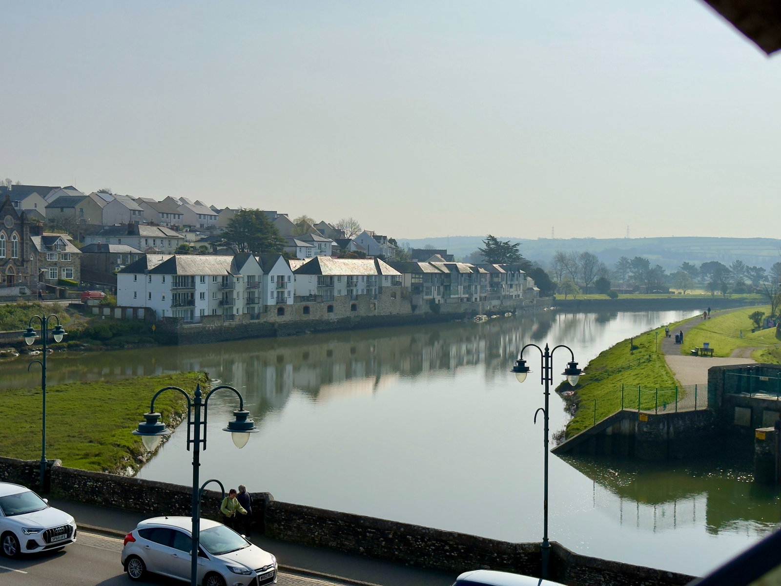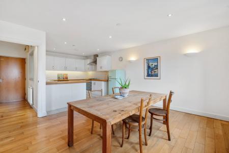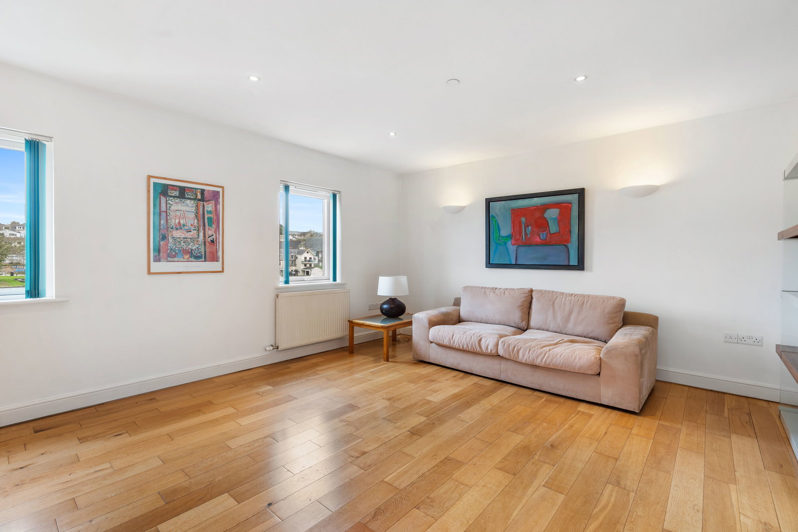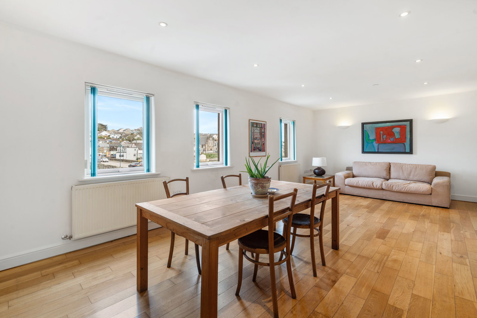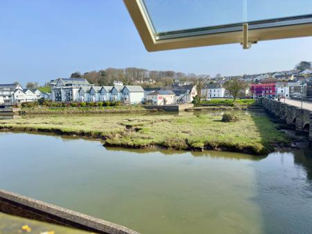 A lovely open plan room with lounge/dining area. Timber flooring. 2 radiators. 3 windows framing magnificent views towards the Old Bridge and the River Camel. Opening through to