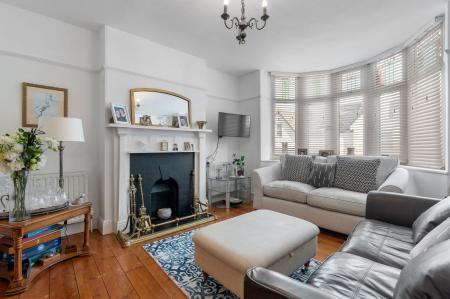 Double glazed bow window in UPVC frame to front. Feature fireplace and surround with over mantel. 2 radiators. Stripped timber floor. Picture rail. T.V. point. Arch to