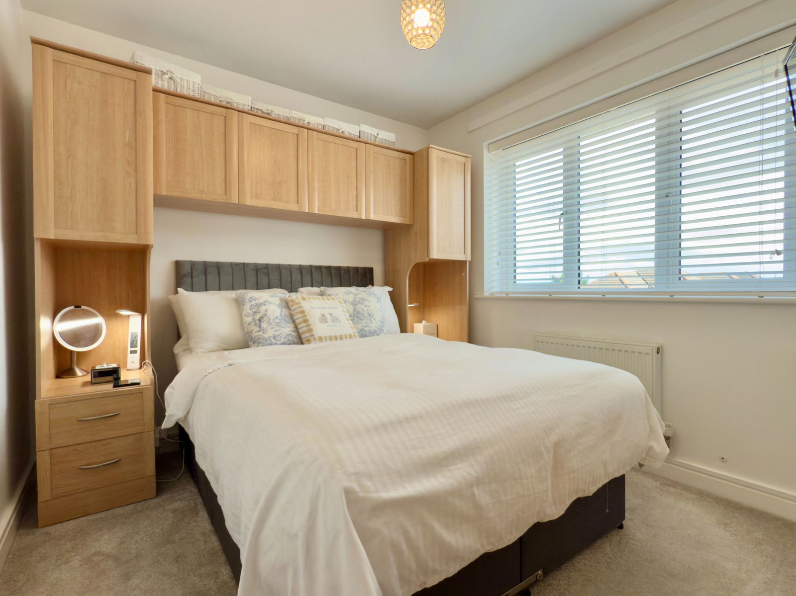 Radiator. 2 x generous storage cupboards. Loft hatch.
