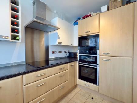 Fully equipped modern kitchen with a good range of wall and base units and drawers. UPVC double glazed window to front. Space and plumbing for washing machine. Integral dishwasher. One and a half bowl stainless steel sink. Induction Neff hob and stainless steel extractor fan. Integral microwave. Neff oven and grill. Integral fridge freezer.