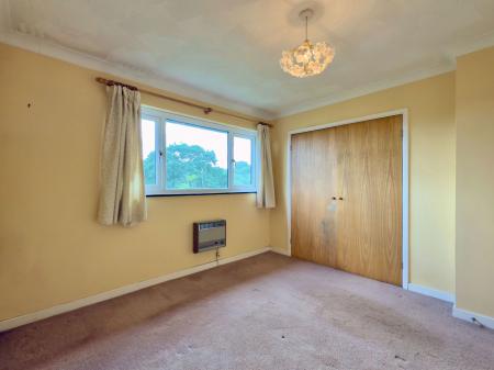 Double bedroom with UPVC double glazed window to front, original gas radiator, double built-in storage cupboard with easy loft access into a large loft space.