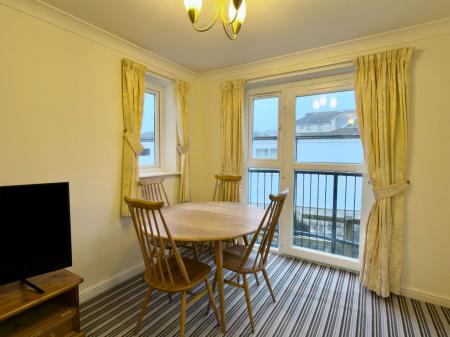 Double glazed door in UPVC frame opening to Juliet balcony together with further window to side. T.V. point. Electric night storage heater. Shelved store cupboard. Glazed double doors opening to