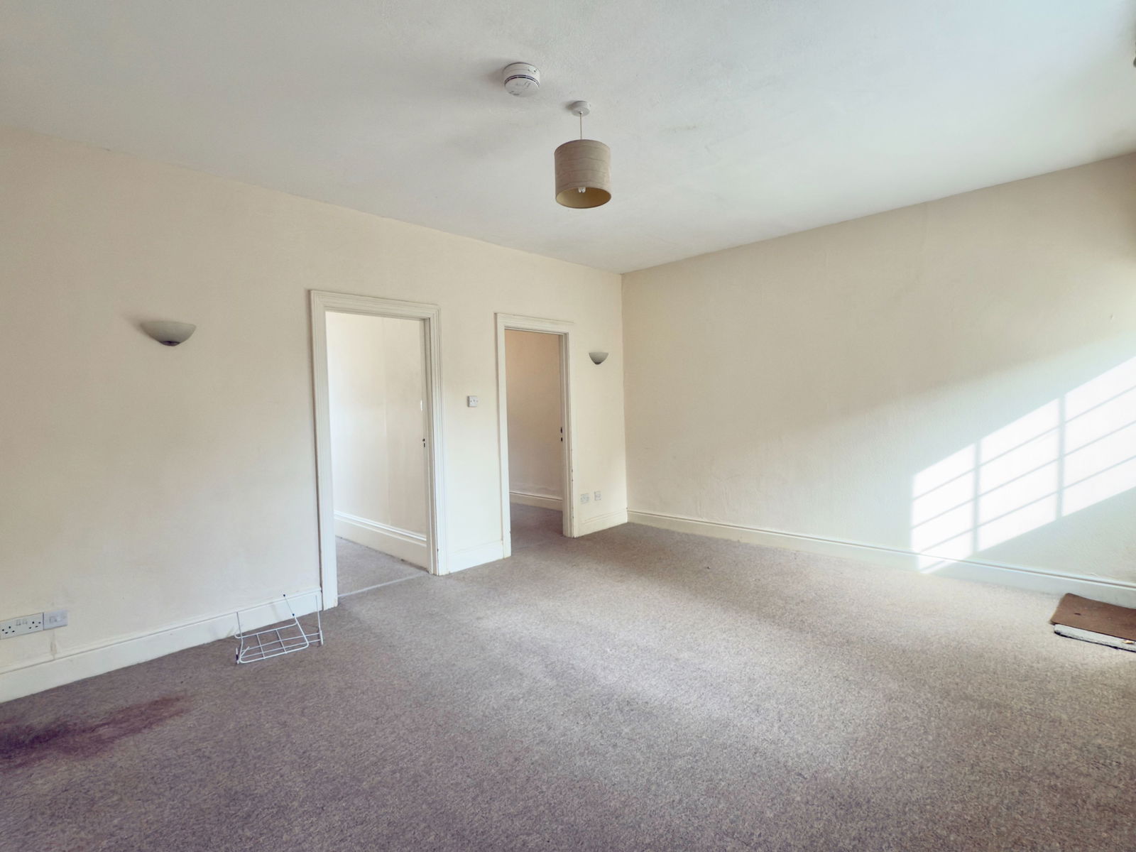 A spacious and light living room with UPVC double glazed window to rear courtyard. UPVC double glazed sash windows to rear. Night storage heater. Built in storage cupboard. Door to