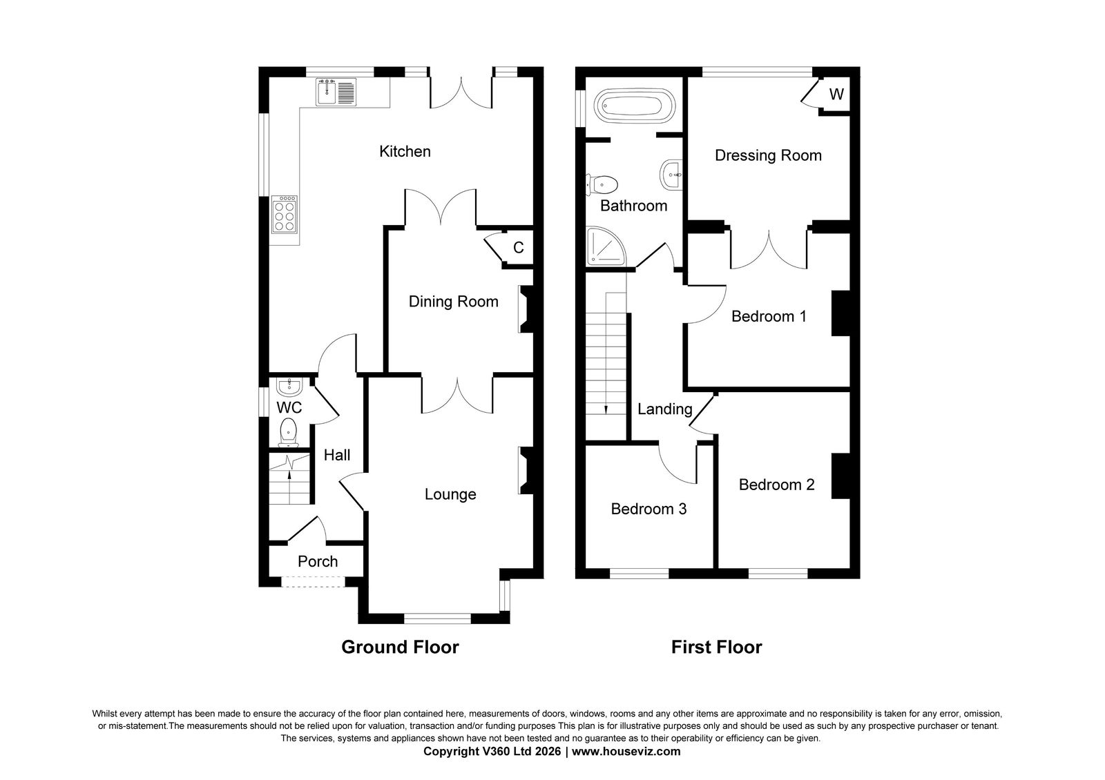 Low level w.c. Wash hand basin with tiled splashback. Opaque UPVC double glazed window to side. Tiled floor.